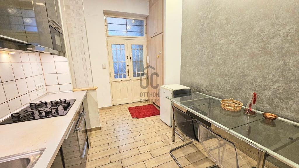 A világos, déli fekvésű nappali és a magas belmagasság elegáns, tágas érzetet ad, a lakás pedig teljes bútorzattal kerül értékesítésre, így azonnal költözhető vagy kiadható.