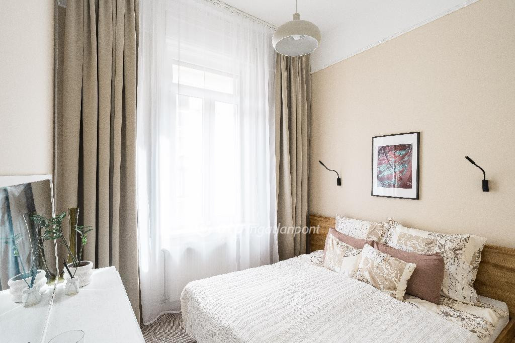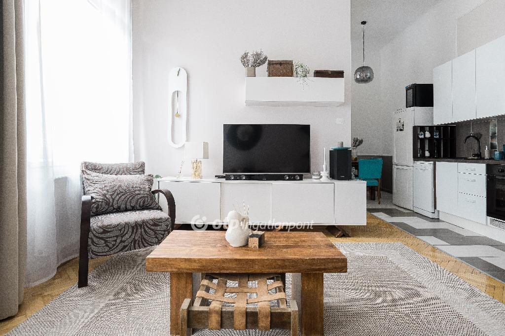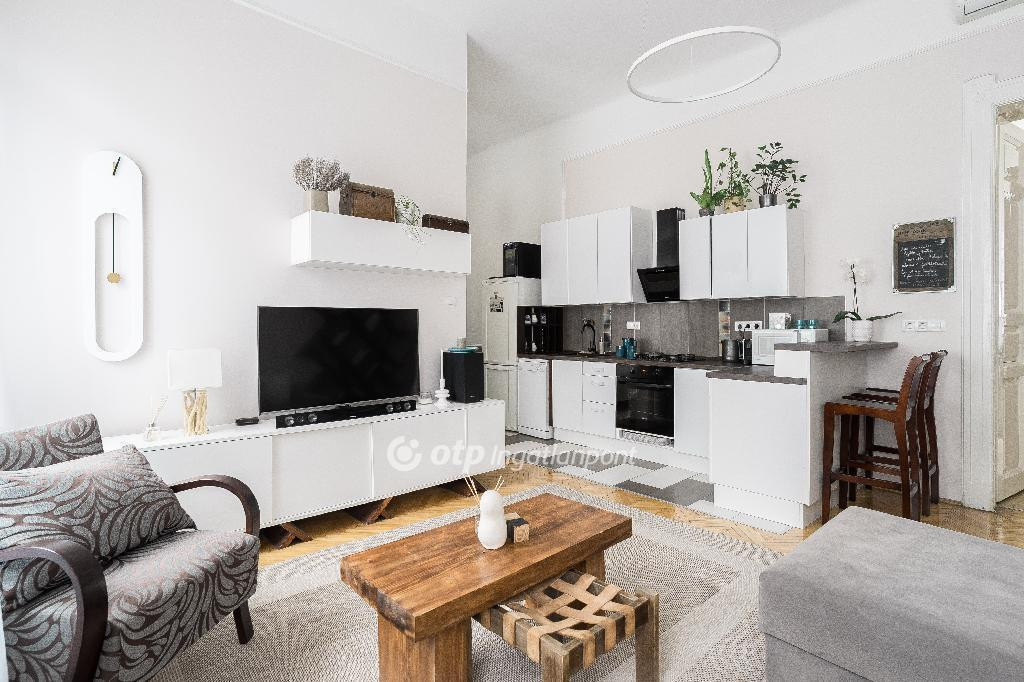 Az 1900-as évek elején épült házat ? emeletráépítés kapcsán ? teljesen felújították. A lakás a 2.emeleten található, magas minőségben, extrán felújított, polgári miliő, 3,6m belmagassággal, napfényben úszó nappalival, hálóval. Elosztása praktikus, jól használható. Amerikai konyhás nappali, bárpulttal, felszerelt konyhával, étkező sarokkal, 2 hálószobával, fürdővel, gardrobbal, összesen 63nm.