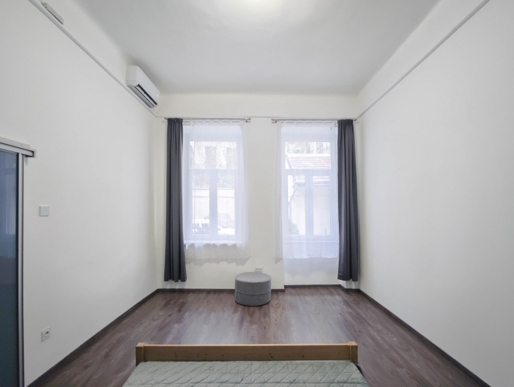 - A hálószoba a nappaliból nyílik, a szobák a csendes belső udvarra néznek.