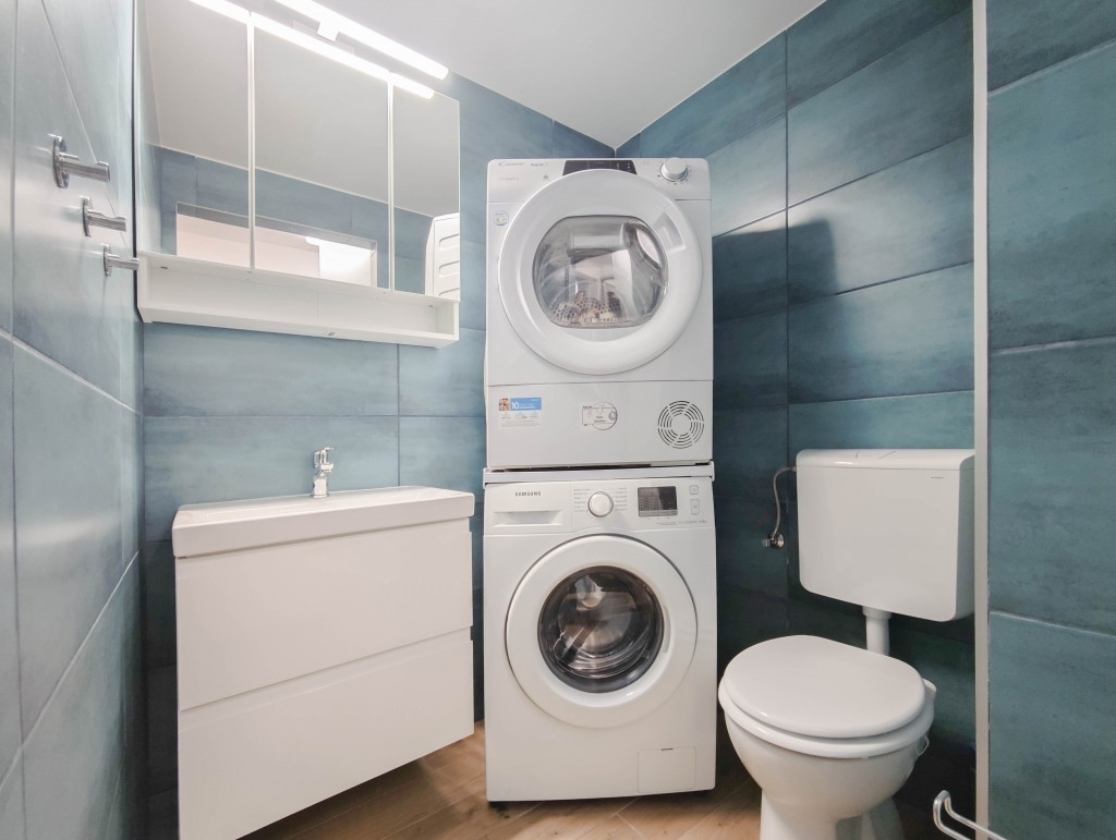 - A lakásban lévő burkolatok modern színvilágúak és jó minőségűek.