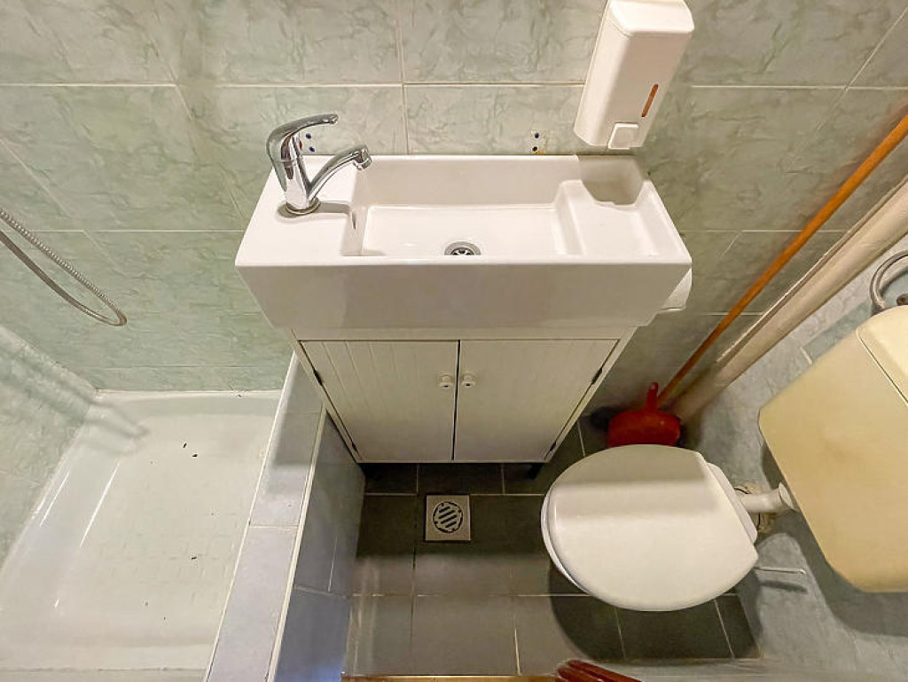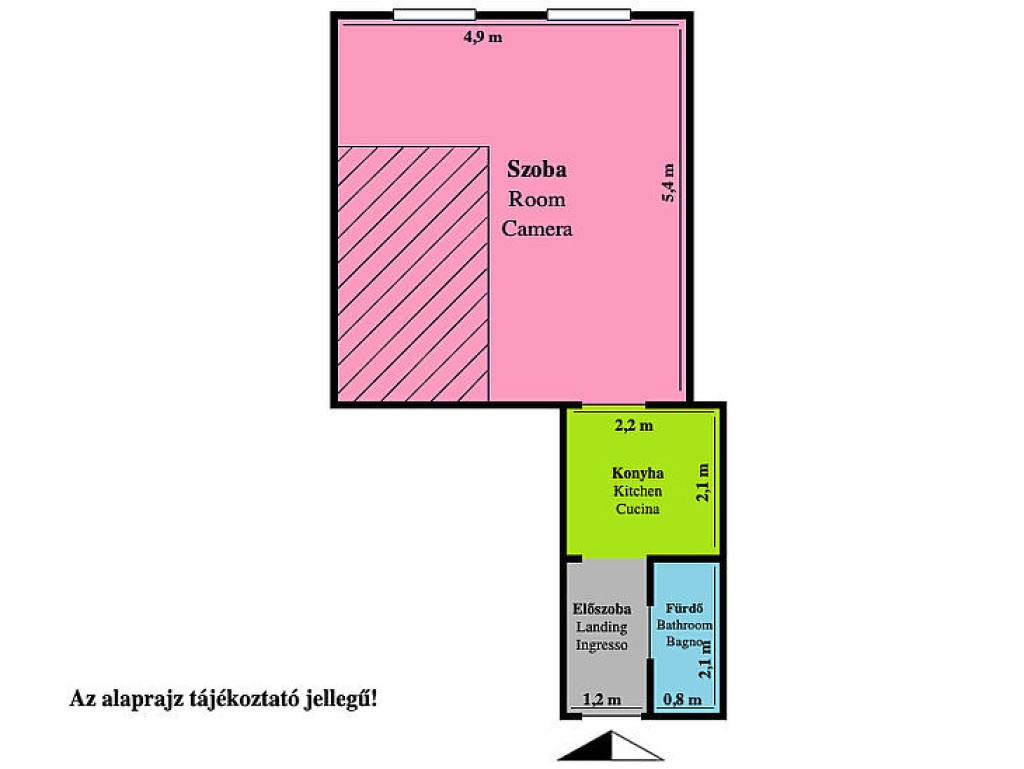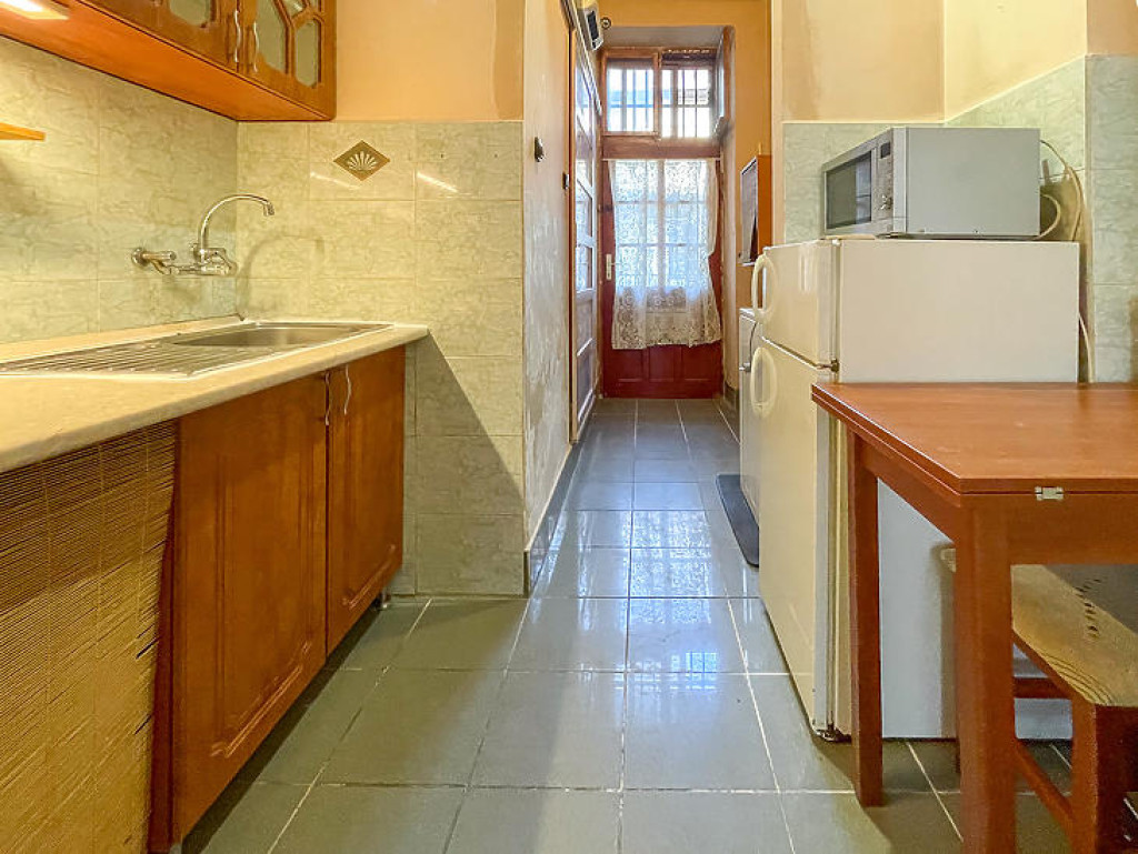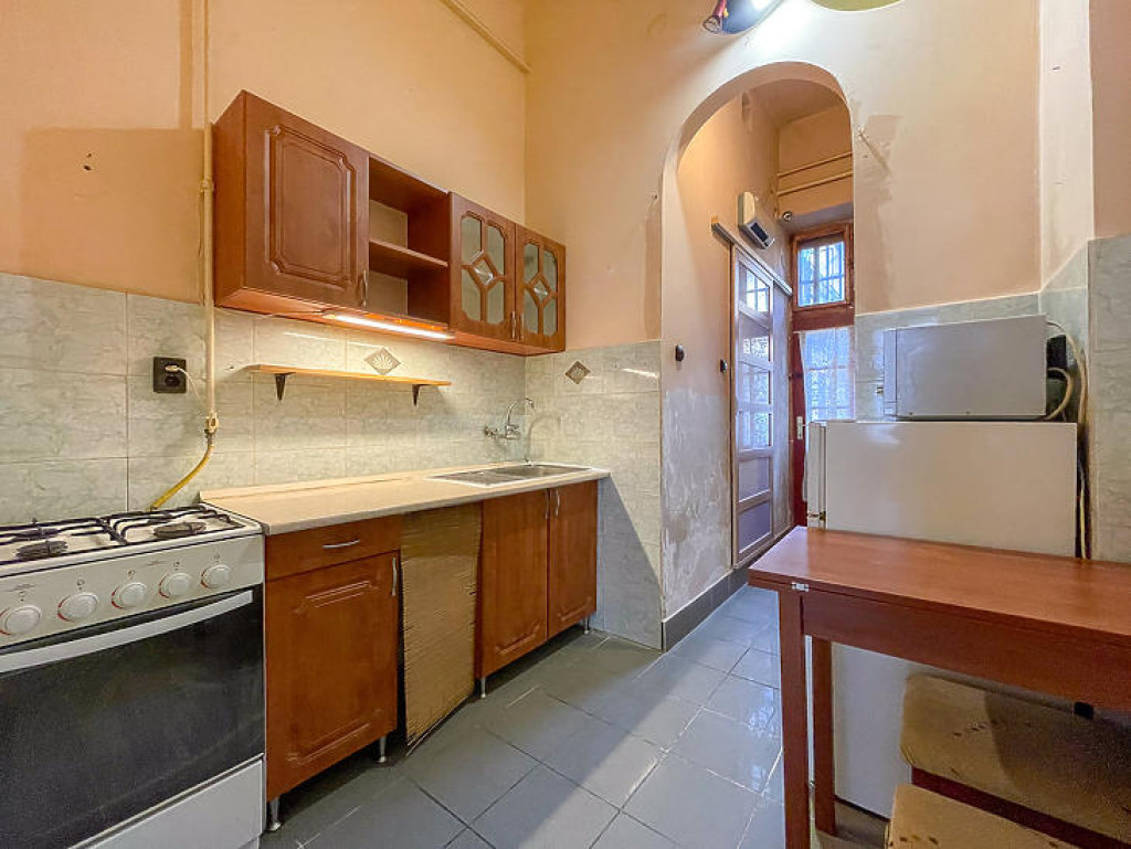 A faparkettás, két ablakos szoba igény szerint leválasztható, jelenleg a 3,65 m belmagasságot kihasználva hálógaléria került kialakításra. A fürdőszoba zuhanyzós, a konyha praktikus elrendezésű.