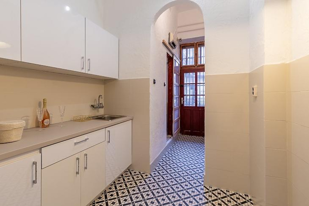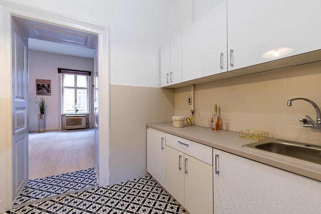 A fürdőszoba zuhanyzós, a konyha praktikus elrendezésű, étkezős mérető.