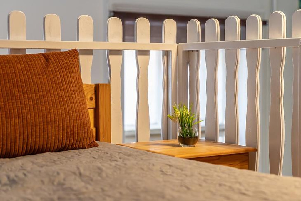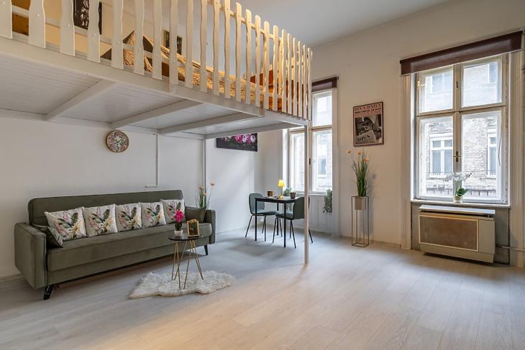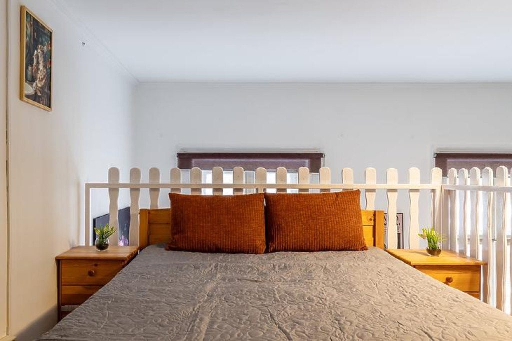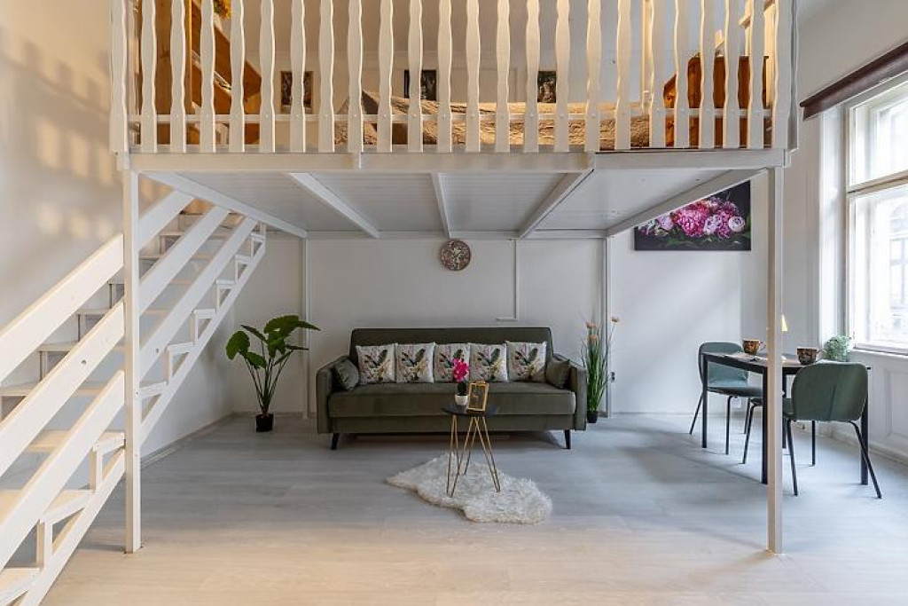 A két ablakos szoba igény szerint leválasztható, jelenleg a 3,65 m belmagasságot kihasználva hálógaléria került kialakításra.