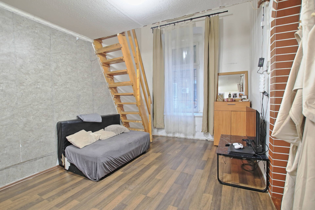 Eladó egy 24 m2-es, földszinti, udvarra néző, galériás átlagos állapotú lakás a Kálvária téren.