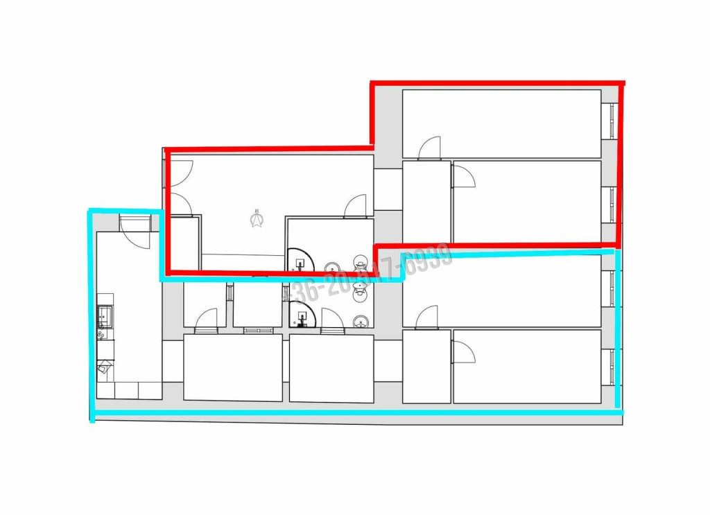 Az ingatlan elosztása kitűnő, előszobával, 2 egész szobával, egy hálófülkével, egy konyhával, egy fürdőszobával, egy WC-vel és 2 db állógalériával rendelkezik. Az alaprajz igény szerint alakítható, akár két külön bejáratú lakást is tervezhet az új tulajdonos.