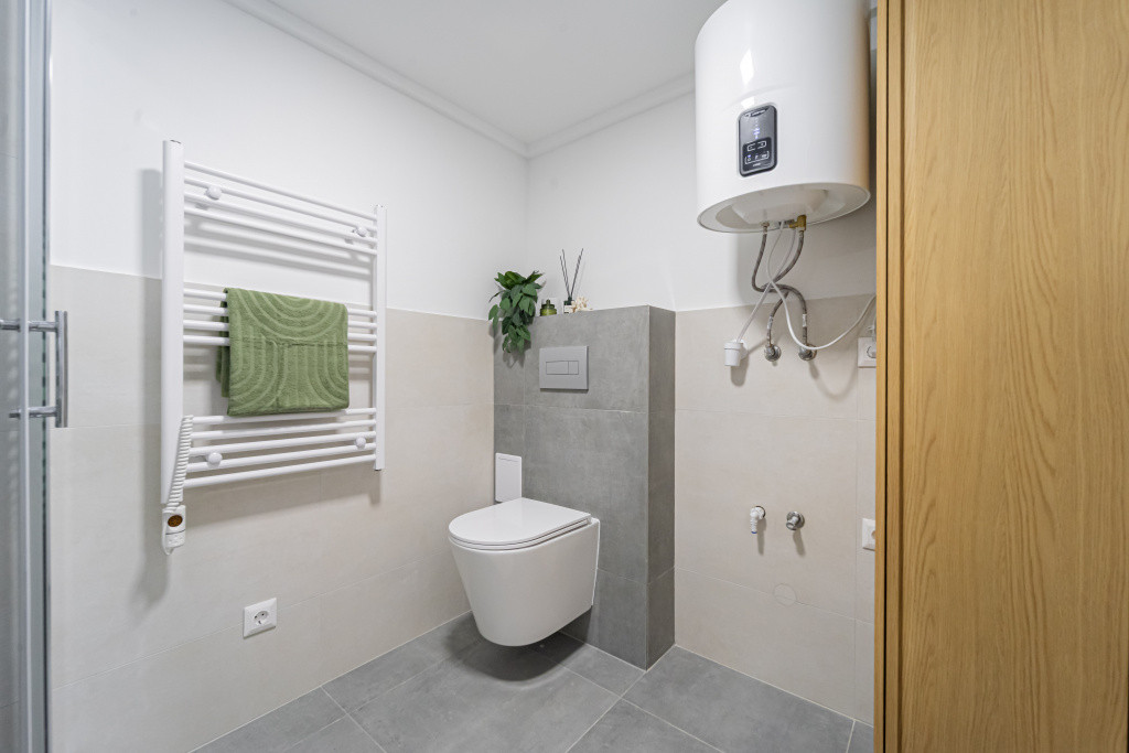 A fűtésről és hűtésről hőszivattyú gondoskodik, a melegvizet villanybojler állítja elő. Az áram és víz egyedi mérés alapján kerül elszámolásra külön mérőórával mind a két lakásban.