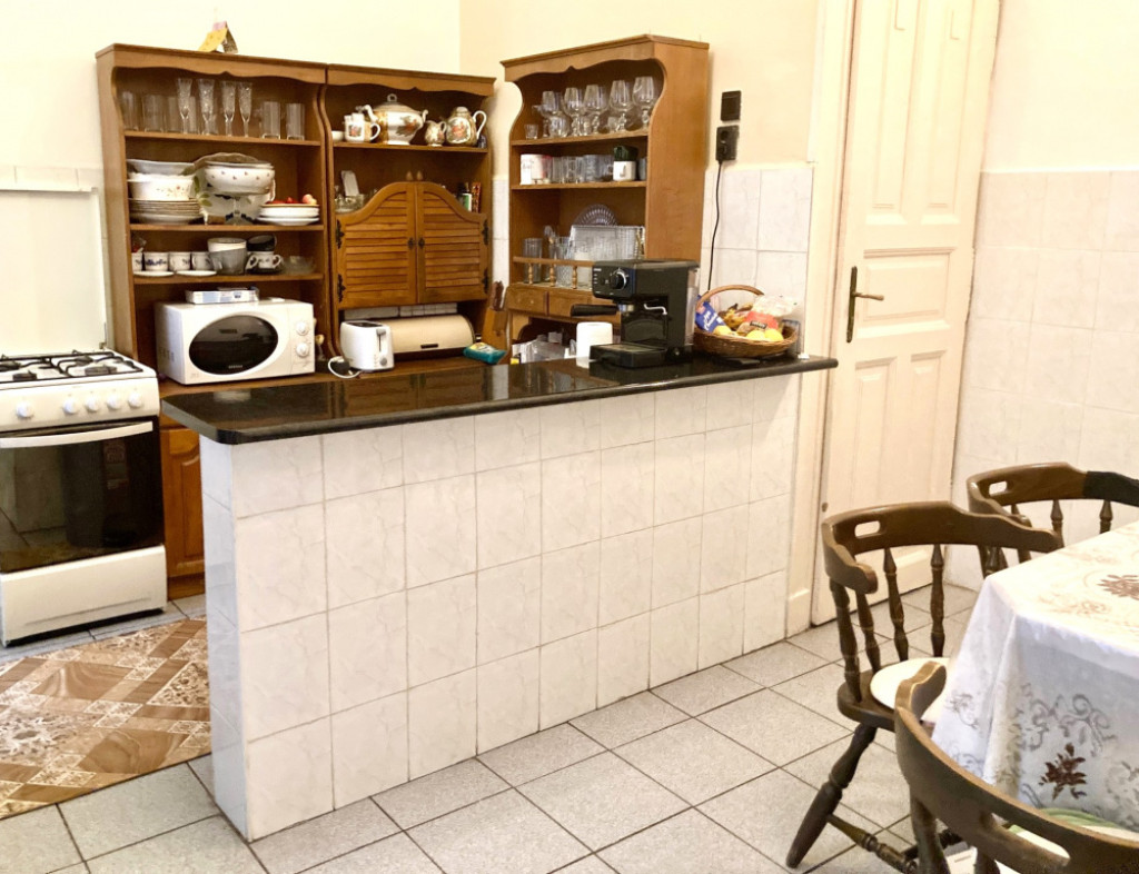 ablakai az utcára nyílnak. A konyhaablakokból a felújított függőfolyosón át a belső udvarra lehet látni.