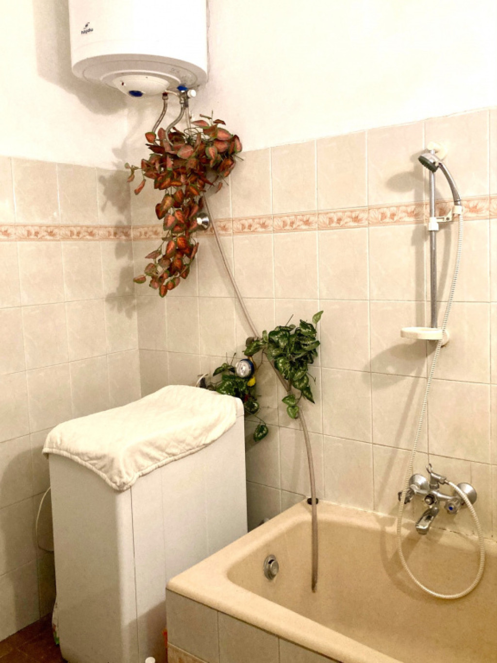 Fürdőszobától külön nyíló helyiségben van a WC, mindkettő ablakos, amik légudvarra nyílnak.