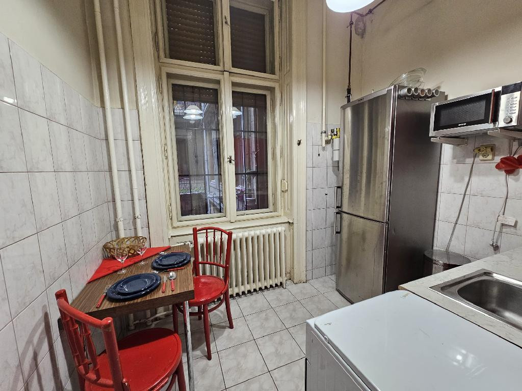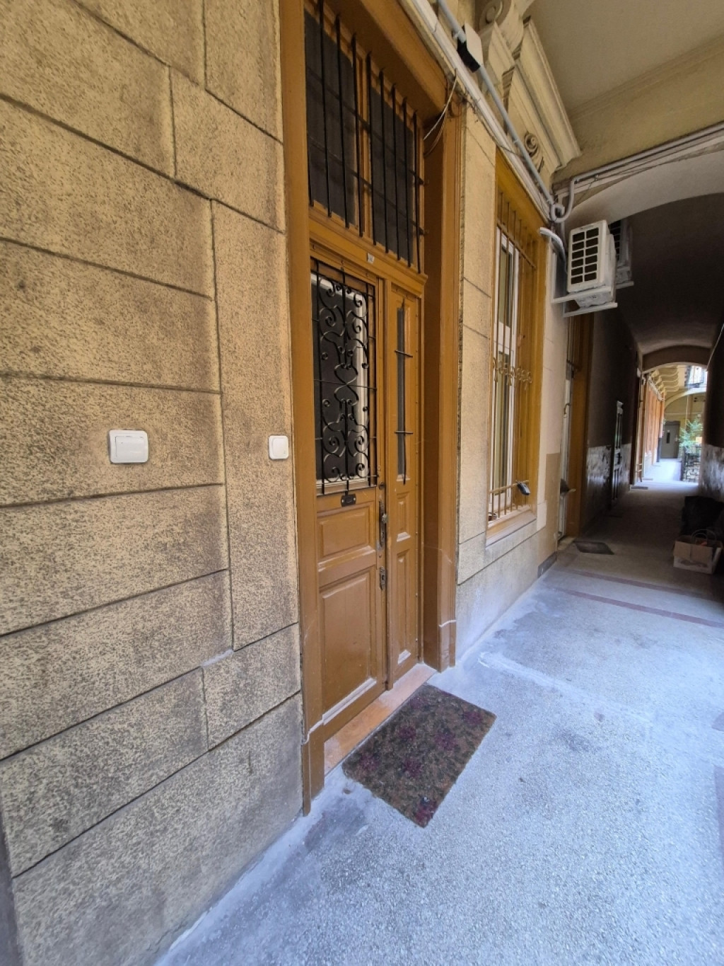 A társasház bejárata a Rákóczi útról nyílik, ugyanakkor a lakás ablakai a Puskin utcára néznek, így a belvárosi zaj nem igazán hallatszik be.