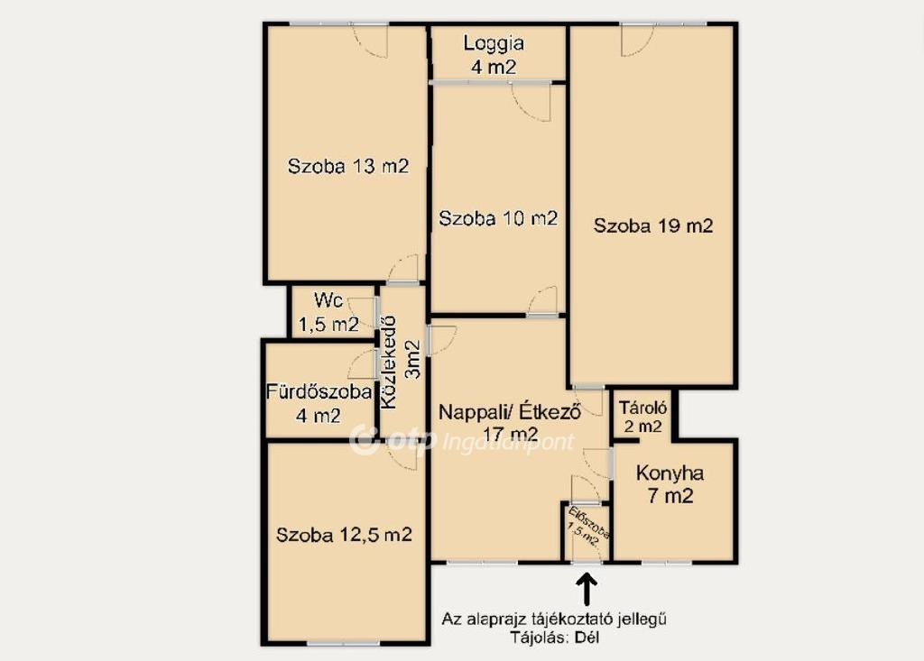 Az elrendezése kényelmes és átgondolt: a külön nyíló szobák mellett egy tágas étkező-nappali rész biztosít közösségi teret, továbbá önálló, tárolóval rendelkező konyha is rendelkezésre áll. Az ingatlanban egy fürdőszoba-WC, valamint egy külön WC is kialakításra került. A déli tájolásnak köszönhetően a helyiségek egész nap világosak és napfényben gazdagok.