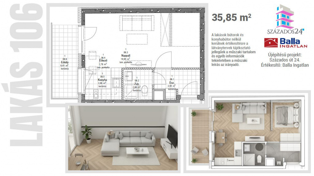 30 lakás és egy üzlet kerül kialakításra, melyekhez 32 db parkolóhely kapcsolódik.