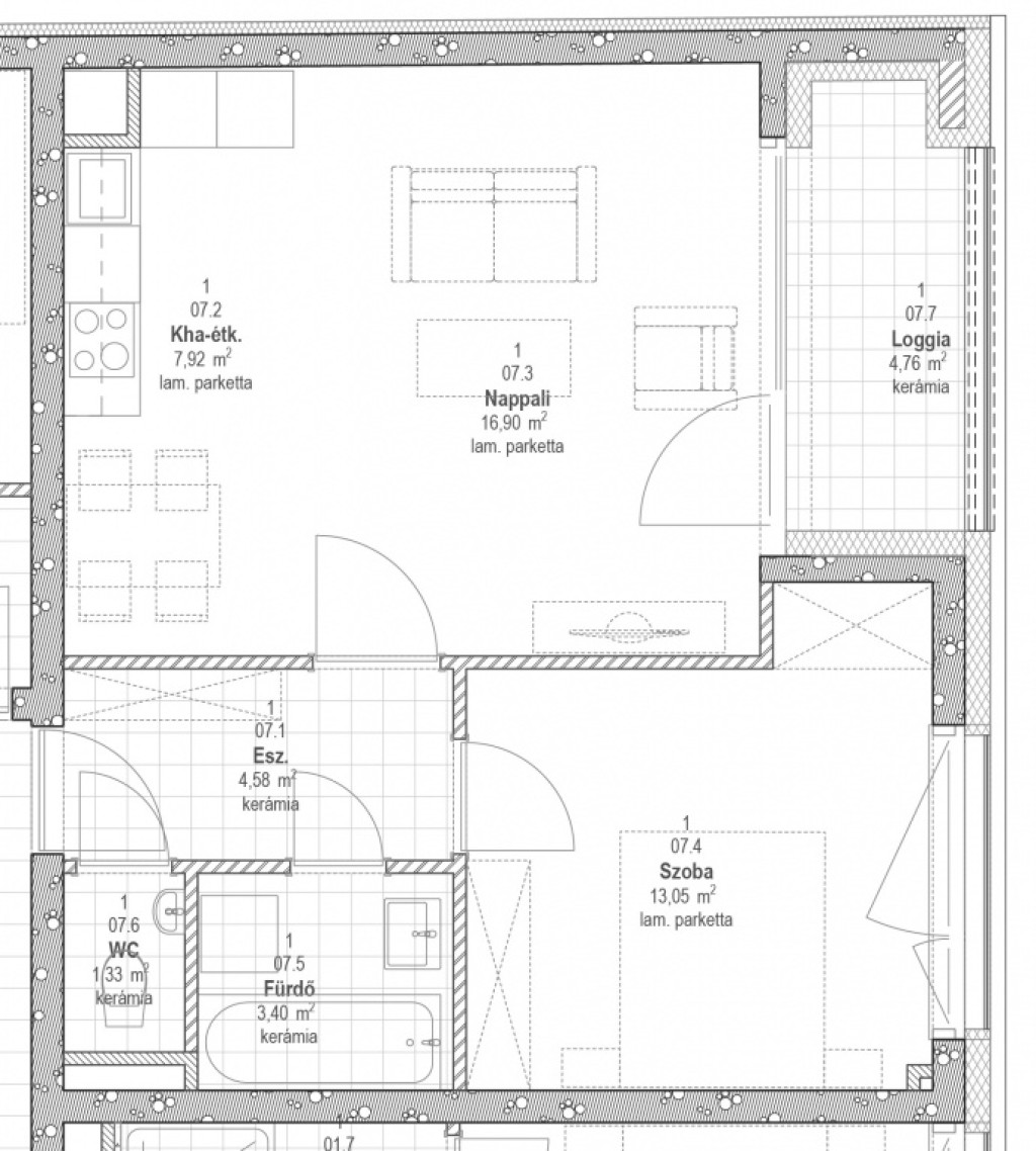30 lakás és egy üzlet kerül kialakításra, melyekhez 32 db parkolóhely kapcsolódik.