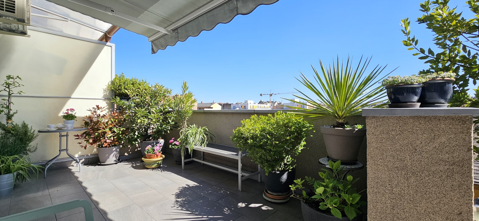 A külső teraszra a nappaliból és a hálószobából egyaránt ki lehet lépni, amely mediterrán hangulatot áraszt összhangban a belső tér kialakításával. A zöldellő növények idilli környezetet biztosítanak a panorámás teraszon kávézáshoz, kiváló helyszín esti pihenésre, grillezésre, még gyermekmedence is elfér.