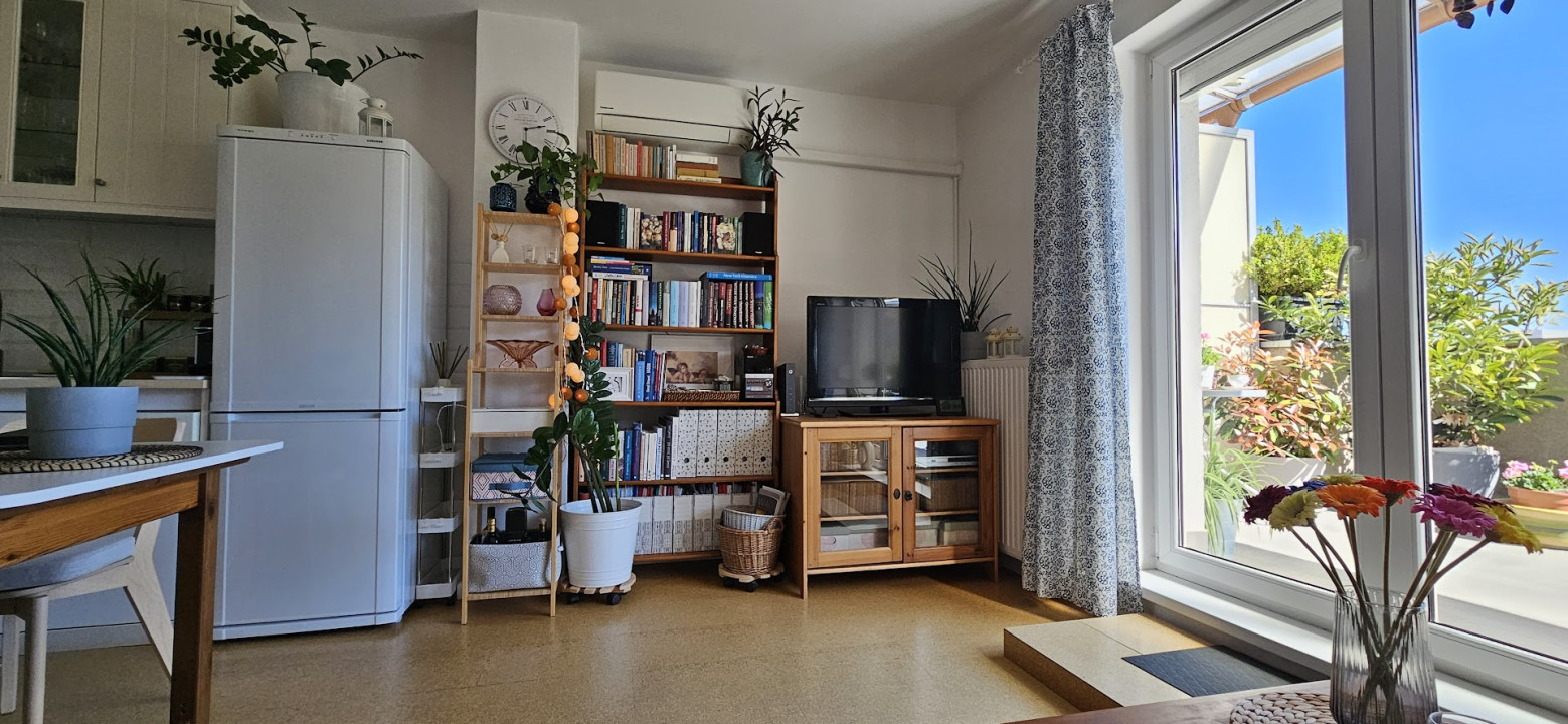 - A lakás napfényes és a „saját kávézó” teraszán üldögélve nézheti a felhőket.