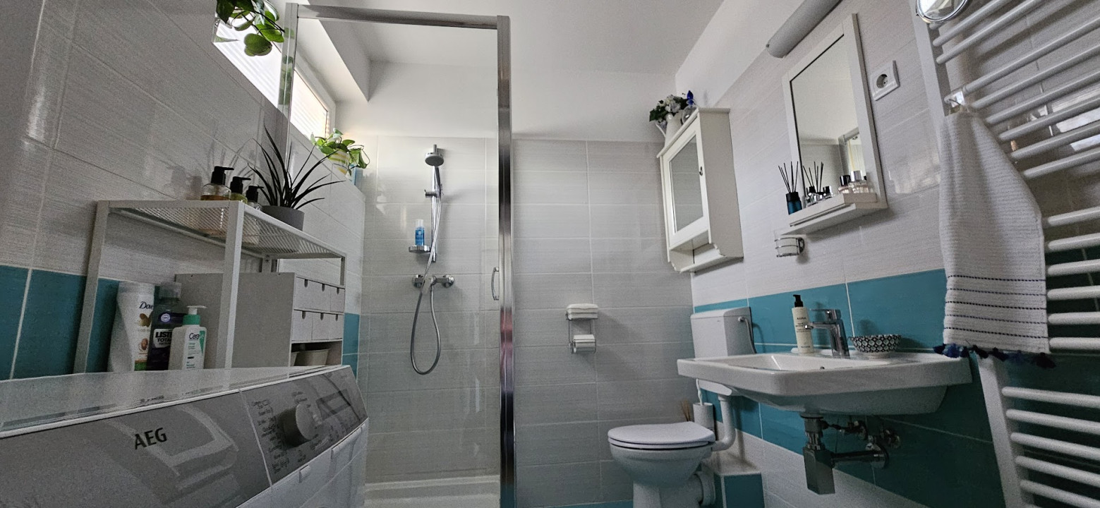 ? A fürdőszobában nagy előny, hogy ablakkal rendelkezik, amely a napfényen kívül, a szellőztetést is megoldja, de van időzített, központi szelőzőrendszer is.