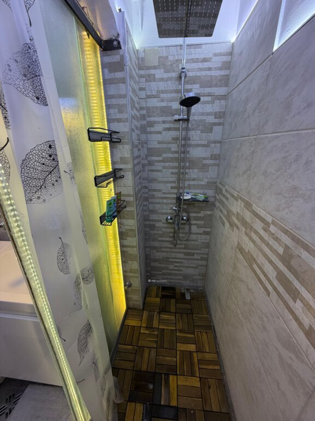 A lakás tulajdoni lap szerint 34 m2-es, 1 szobás, azonban a nagy (4 méteres) belmagasságnak köszönhetően kialakításra került egy 8 m2-es külön bejáratú szoba a konyha felett, valamint egy 11 m2-es galéria a nappaliban. A galérián a belmagasság 1,8 m.