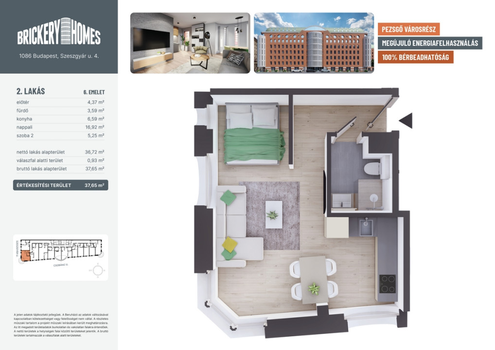 A Brickery Homes egy komplett felújításon átesett társasház, amely egy pezsgő városrészben, karakteres építészeti megjelenésével és kiváló lokációjával kínál új lehetőségeket – nemcsak lakhatásra, de befektetésre is. Az épületben 62 darab kompakt lakást kerül kialakításra – stúdiók, garzonok és 1+1 szobás otthonok – melyek tökéletesen illeszkednek a dinamikus belvárosi életstílushoz.