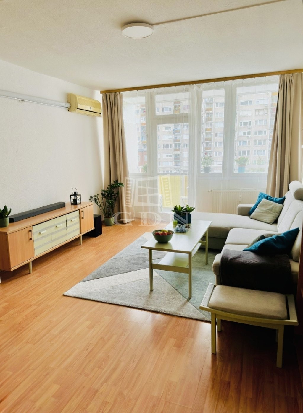 A nappali klimatizált(Split klíma), egy 4 négyzetméteres erkéllyel.