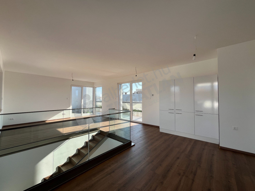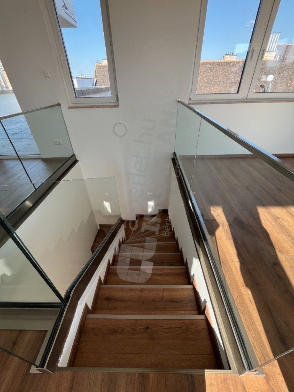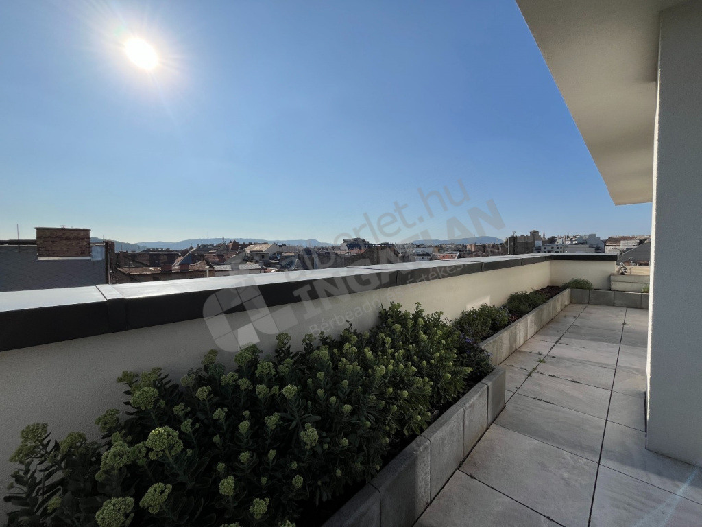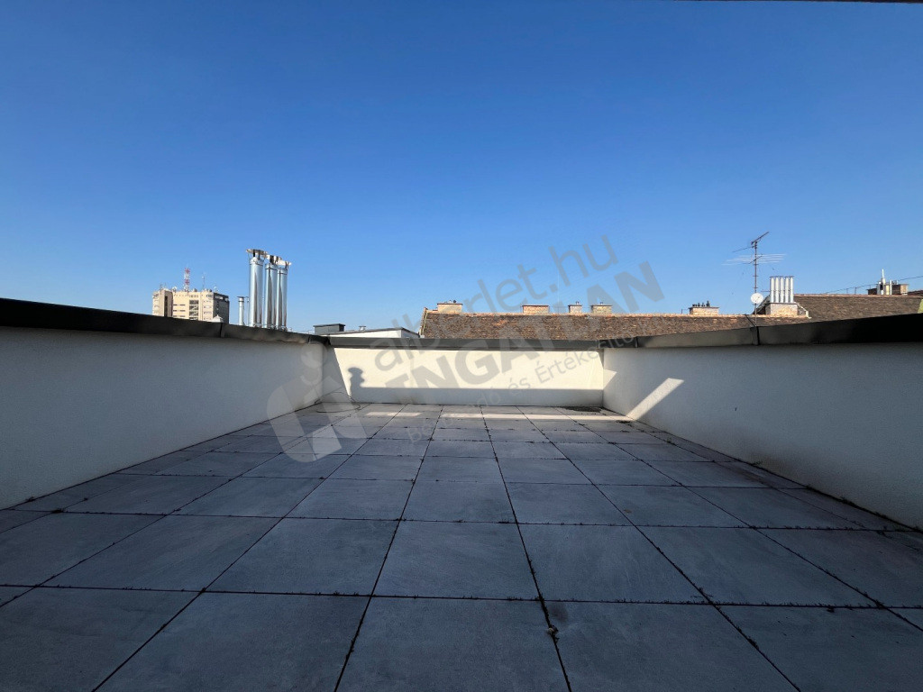 Egy új építésű, csendes, de központi elhelyezkedésű társasház legfelső szintjén eladó egy belső kétszintes, kulcsrakész penthouse lakás a VIII. kerületben. Az ingatlan lakótere 106,4 négyzetméter, ehhez rendkívül nagy, összesen 146,37 négyzetméternyi terasz tartozik, amely három égtáj felé nyitott, így egész nap élvezhető a természetes fény és a lenyűgöző kilátás a Gellért-hegyre, valamint a Hármashatár-hegyre. A lakás összesen négy szobával rendelkezik, a beosztása dupla komfortos, a gépesített konyha, modern szaniterek és burkolatok révén azonnal költözhető.