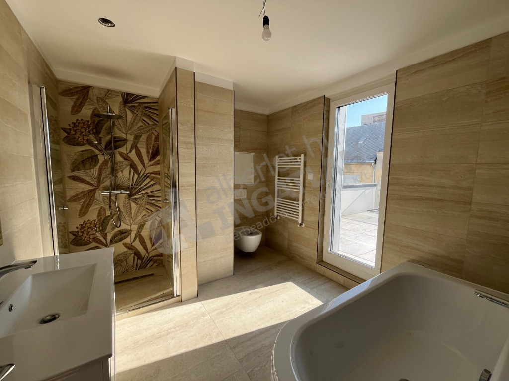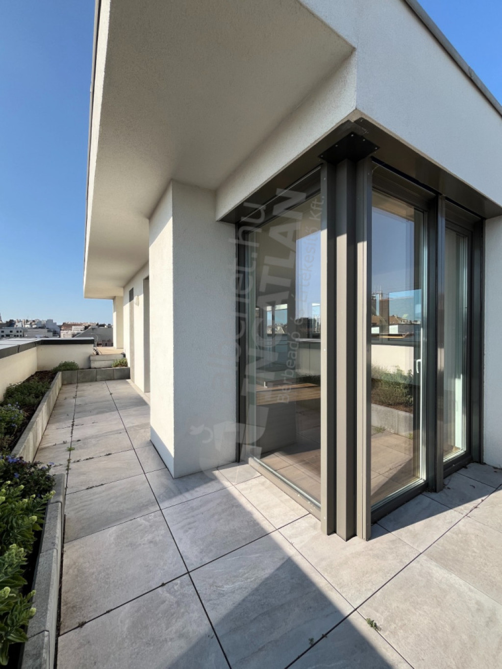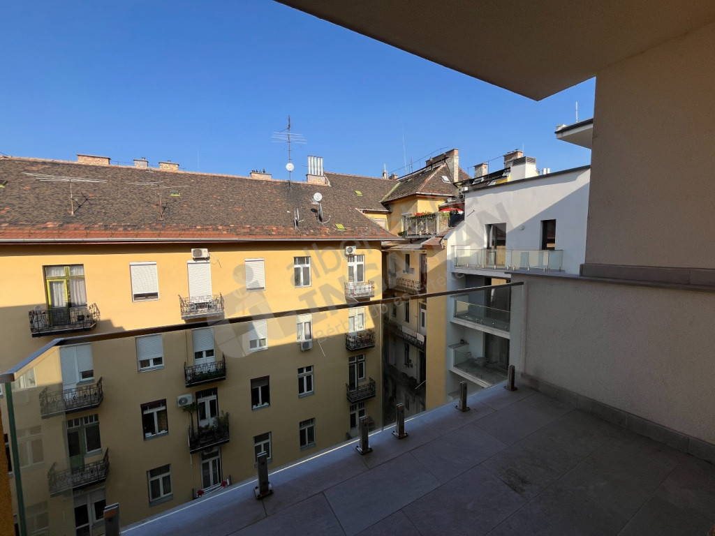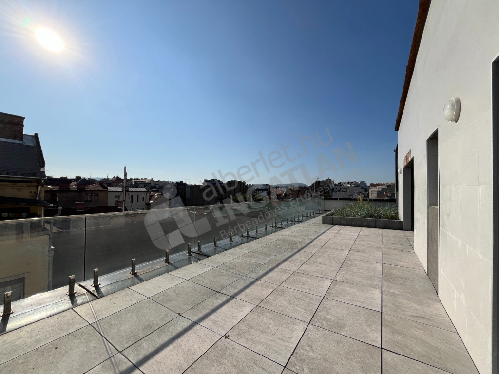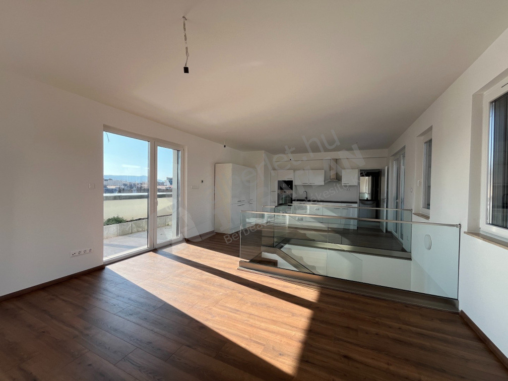 Egy új építésű, csendes, de központi elhelyezkedésű társasház legfelső szintjén eladó egy belső kétszintes, kulcsrakész penthouse lakás a VIII. kerületben. Az ingatlan lakótere 106,4 négyzetméter, ehhez rendkívül nagy, összesen 146,37 négyzetméternyi terasz tartozik, amely három égtáj felé nyitott, így egész nap élvezhető a természetes fény és a lenyűgöző kilátás a Gellért-hegyre, valamint a Hármashatár-hegyre. A lakás összesen négy szobával rendelkezik, a beosztása dupla komfortos, a gépesített konyha, modern szaniterek és burkolatok révén azonnal költözhető.