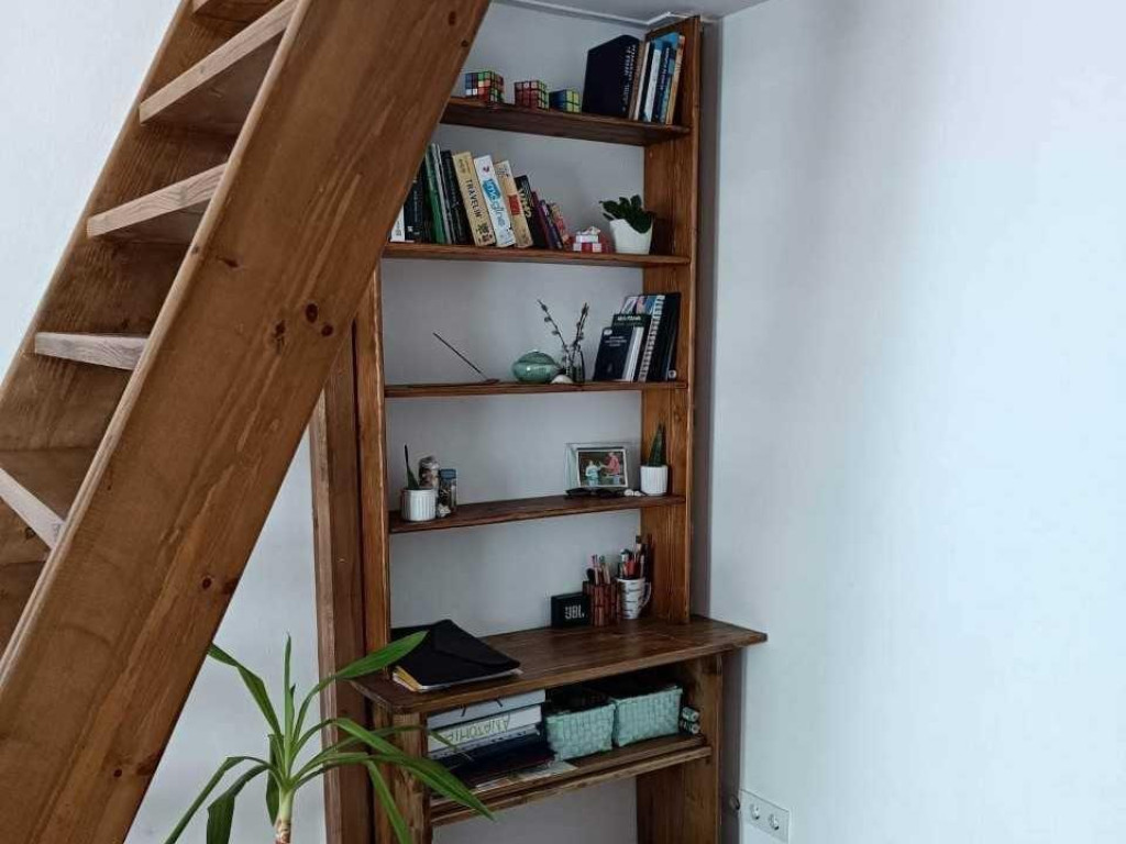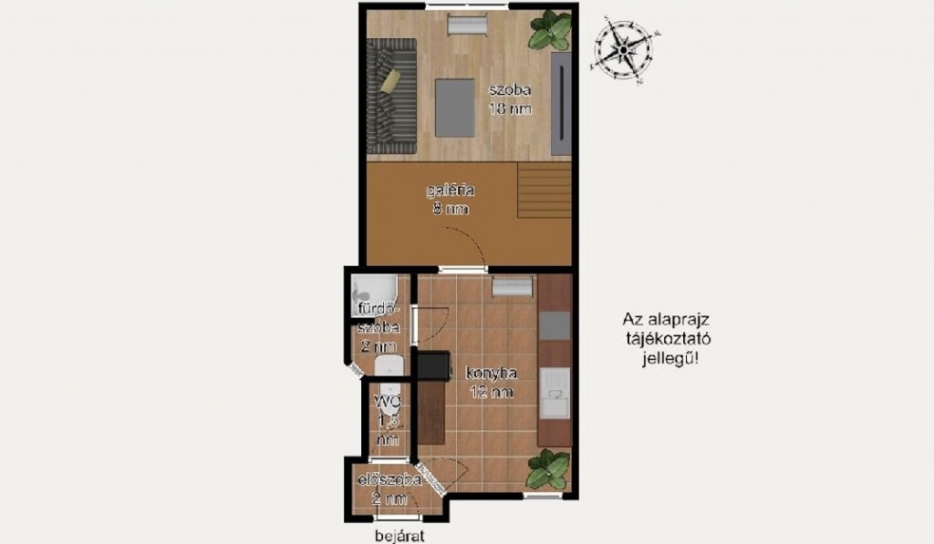 A délnyugati fekvésű 18 négyzetméteres nagyszoba igen tágas az alvógalériás elrendezésnek köszönhetően jut hely pihenni, dolgozni, edzeni is. A kényelmet szolgálja még a külön bejáratú fürdőszoba és WC, valamint az újonnan beépített, praktikus konyhabútor, jó sok tárolóhellyel.