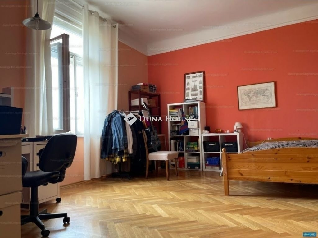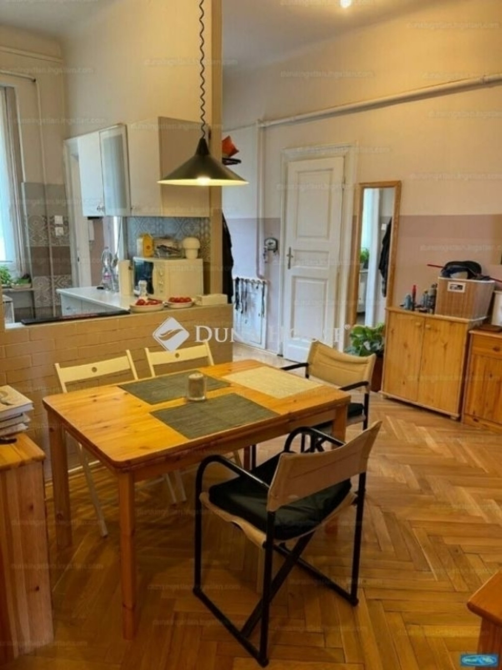 ,,Budapest VIII. kerületében, a Tisztviselőtelep frekventált és rendkívül kedvelt részén eladó egy 95 m²-es, körbejárható, tágas terekkel rendelkező polgári lakás. Az ingatlan egy Hültl Dezső építész által tervezett, a 20-as években épült, masszív 60 cm vastag falakkal rendelkező liftes társasházban található, amely télen jól tartja a meleget, nyáron pedig kellemesen hűvös marad.A lakás elrendezése praktikus és élhető: két nagy szoba, egy fél szoba, étkezős konyha, fürdőszoba és külön WC található benne. A 3,60 m-es belmagasság tovább növeli a tágasság érzetét, így akár iroda, ügyvédi rendelő vagy orvosi praxis kialakítására is kiválóan alkalmas (a házban több hasonló működik is).Az ingatlan egy ötszintes, liftes épület magasabb szintjén helyezkedik el, ÉNY-i fekvéssel. Fő ablakai az utcára néznek, míg a konyha és az előszoba a társasház udvarára és a körfolyosóra nyílik, így a lakás a városi környezet ellenére kifejezetten csendes.A fűtés gázkonvektorral, a meleg víz gázkazánnal működik; minden közmű egyedi mérős, a közös költség 25.000 Ft. A környék infrastruktúrája kiváló: több egyetem, bevásárlási lehetőség, valamint az 1-es villamos és a Népligeti metróállomás néhány perc sétával elérhető.A környéken a parkolás rendkívül kedvező, könnyen találni szabad helyet, ami nagy előnyt jelent a belvároshoz közeli elhelyezkedés mellett.A lakás hitelre is megvásárolható, a finanszírozásban ingyenes tanácsadással segítjük a vevőket.Kiváló elhelyezkedésű, jól alakítható, polgári hangulatú lakás akár otthonnak, akár vállalkozásnak.