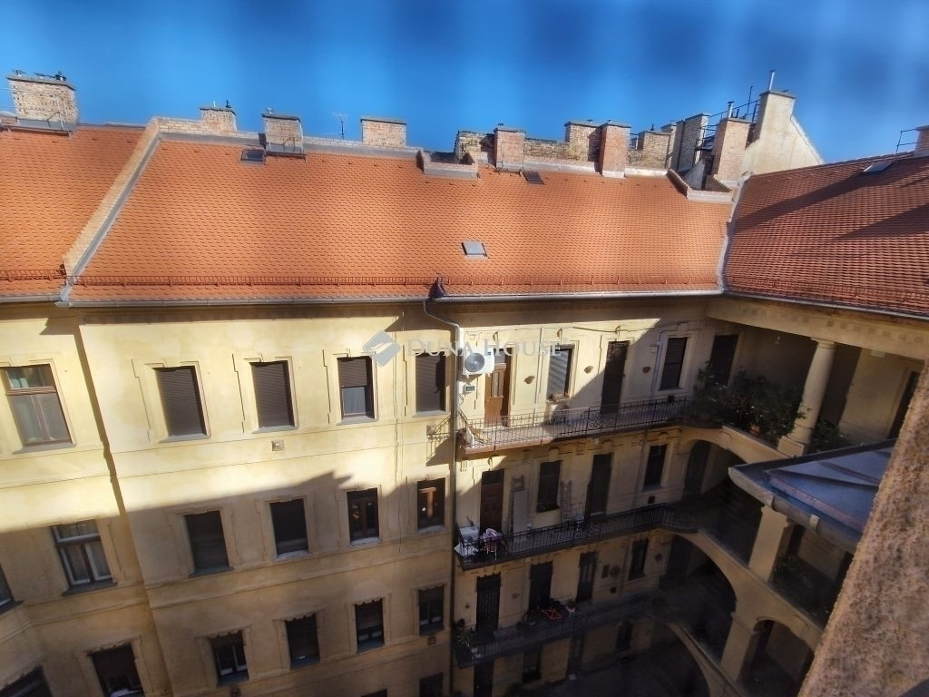 A lakás egy lift nélküli társasház 4. emeletén található és abszolút csendes, mivel a belső udvarra néz, és felette már csak a padlástér helyezkedik el. A lakás elosztása praktikus: 2 külön nyíló hálószoba, konyha, fürdőszoba, külön WC, valamint egy kamra található benne. A 26 m²-es nappali méreténél és kialakításánál fogva könnyen 2 részre osztható, így akár egy közel 9 m²-es plusz szoba is leválasztható. Minden helyiség nagy ablakokkal rendelkezik, így az ingatlan rendkívül világos.