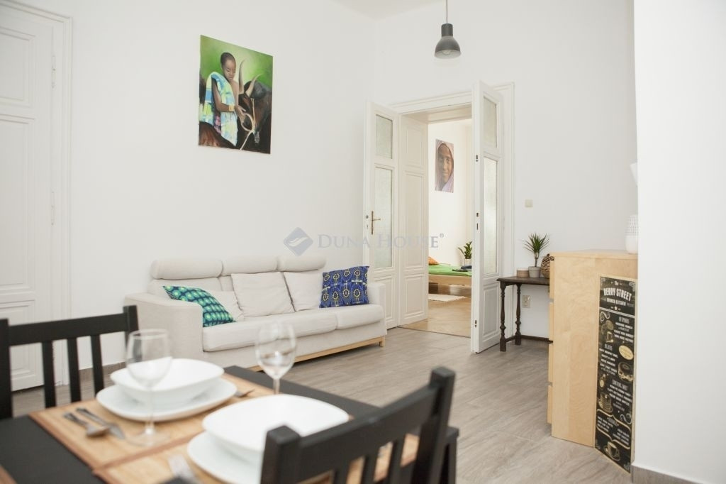 Eladó Budapest VIII. kerületében, a Palotanegyedben, a Vas utcában, rendezett társasház 1. emeletén egy 70 m²-es, amerikai konyhás nappali + étkezővel és két külön nyíló szobával rendelkező, teljeskörűen felújított, összkomfortos, polgári lakás, befektetési és saját célra egyaránt alkalmas kialakítással.