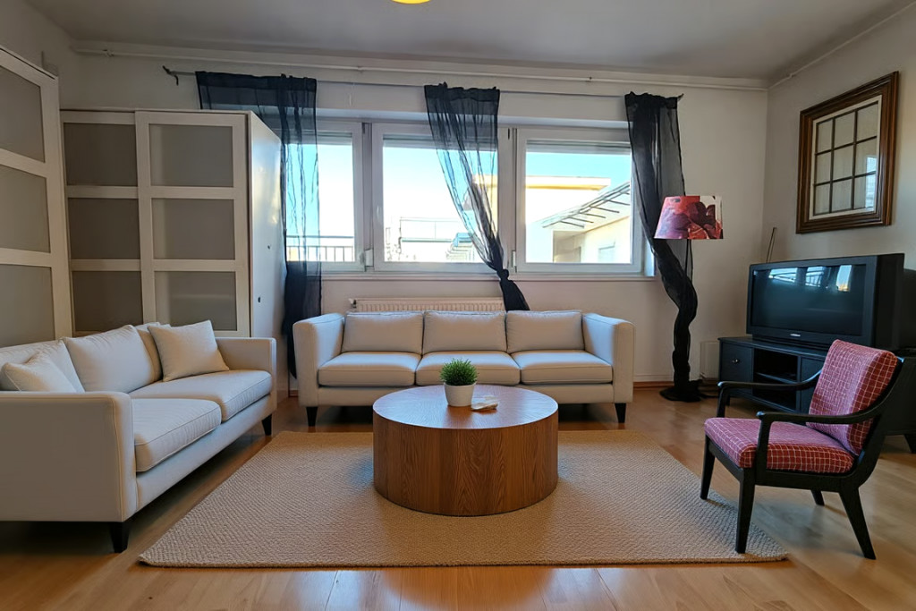 Érdemes megnézni ezt az 56 nm-es, 1+2 félszobás, amerikai konyhás lakást, amelynek minden szobájából kiléphet a 45 nm-es teraszra.