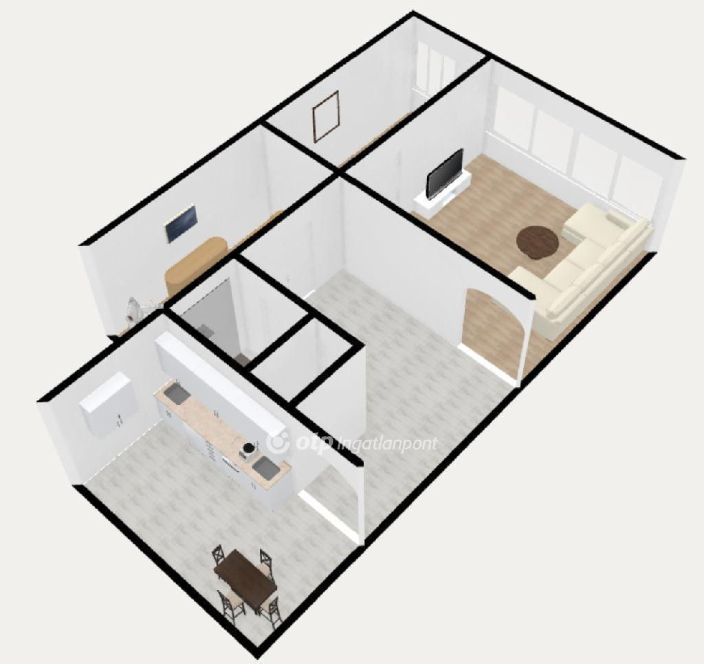 Jelenlegi elrendezése praktikus, minden helyiség külön nyílik, a 2,6 méteres belmagasságának, tágas nappalijának, valamint a két nagy szobájának köszönhetően plusz teret és kényelmet nyújt.