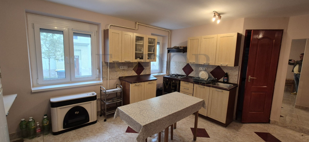 A nappali és a konyha járólappal, míg a nagyszoba fa parkettával van burkolva.