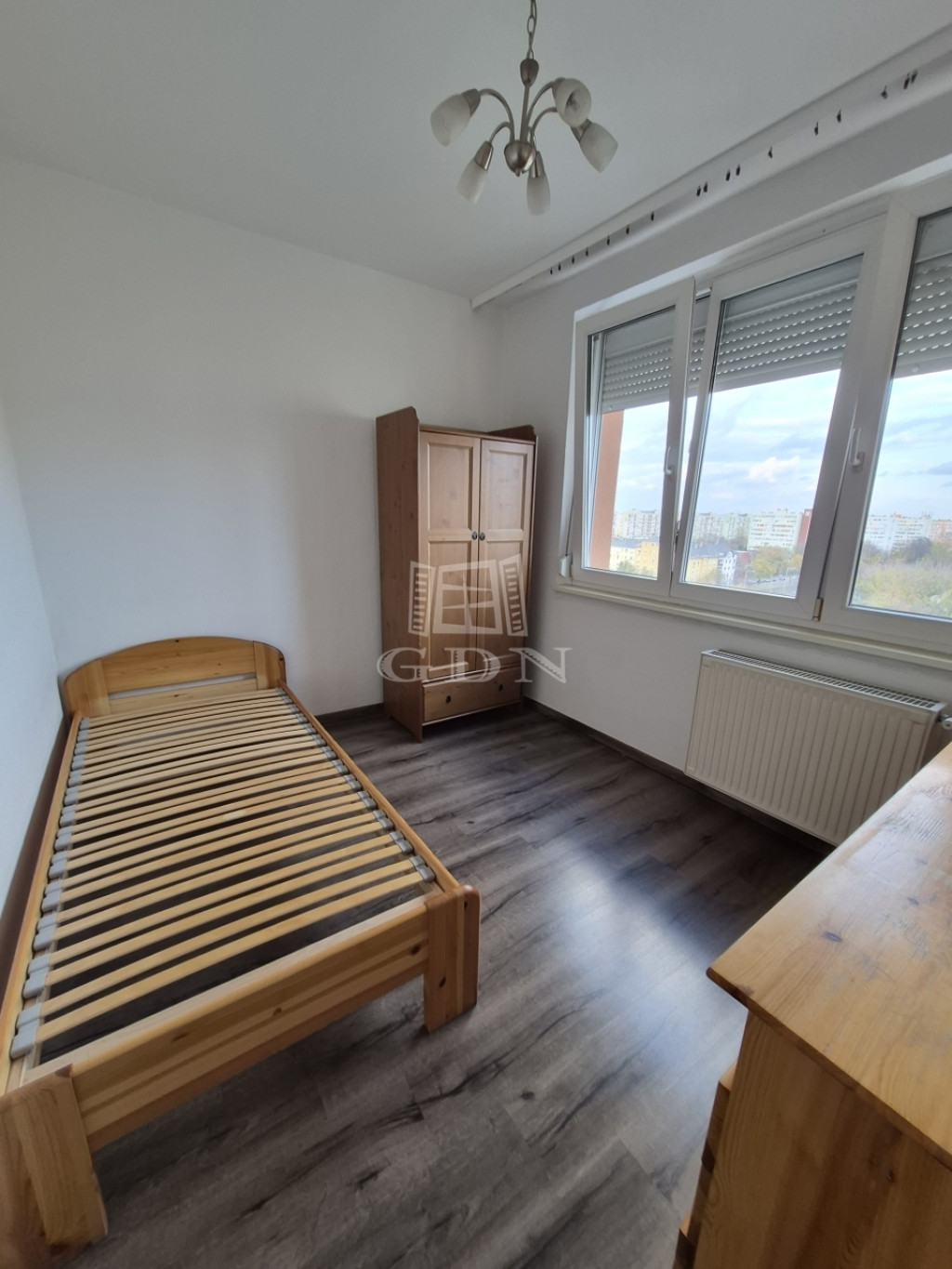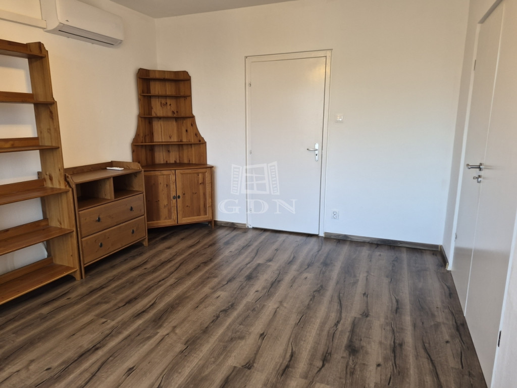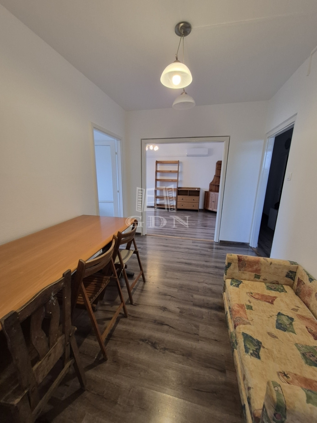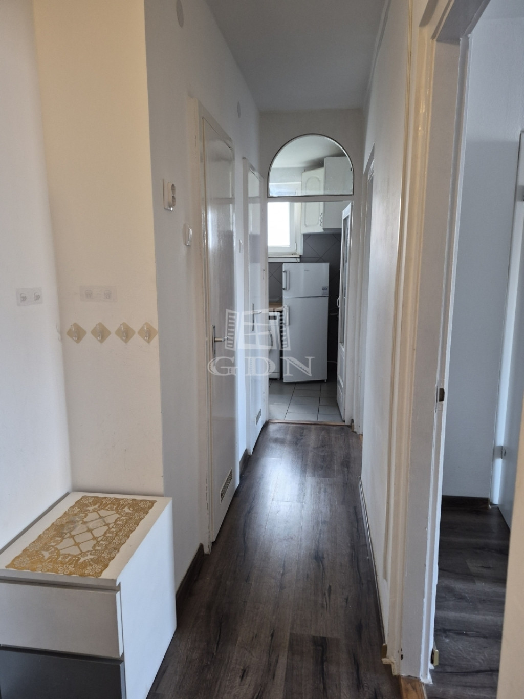 Két szoba, egy félszoba, étkező, konyha, fürdőszoba, külön wc, gardrób, előszoba. A lakás a kilencedik emeleten található, klímás, négy éve volt felújítva. Burkolat: parketta, illetve járólap. Biztonsági bejárati ajtó és műanyag kültéri nyílászárók, redőnyök kerültek beépítésre.