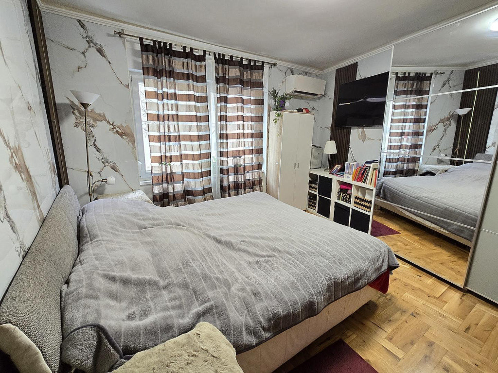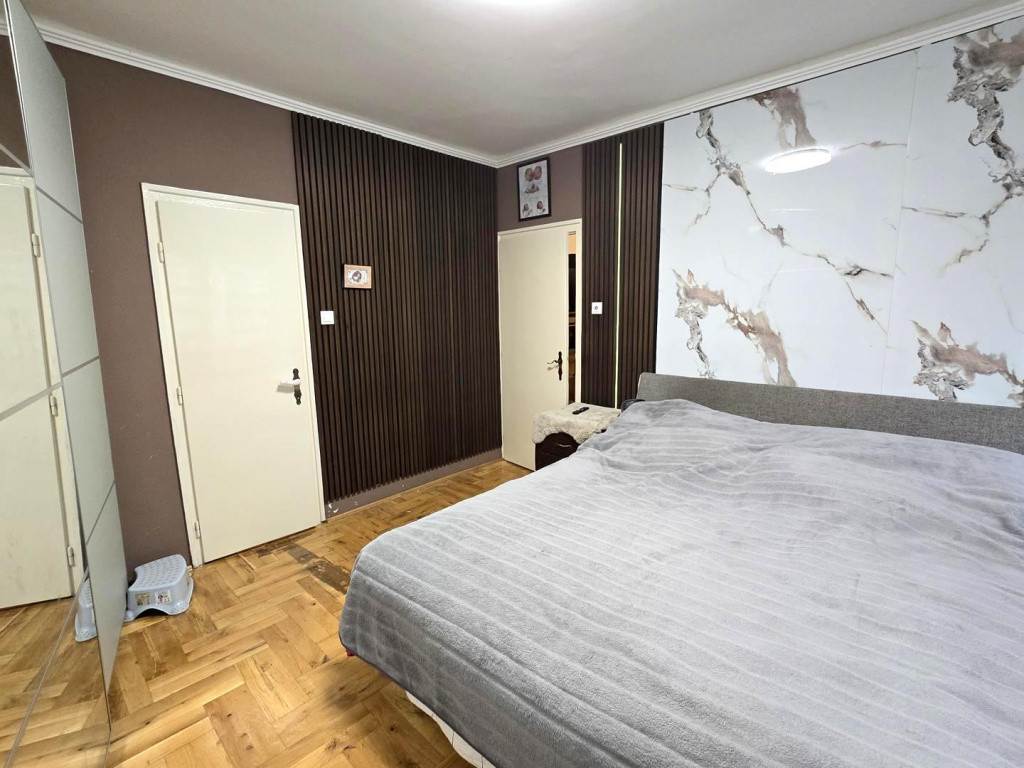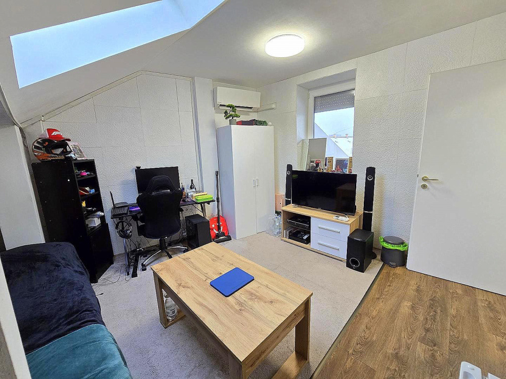 - Az alsó szinten nappali + 2 hálószoba, világos, ablakos konyha, fürdőszoba, külön wc, valamint 8 m2-es erkély található.