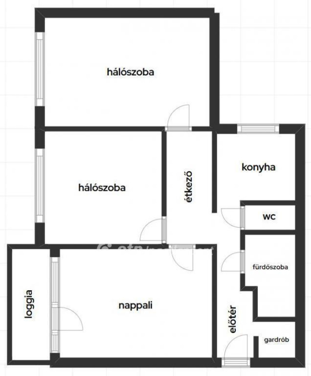 -3 különnyíló szoba (jelenleg nappali + 2 hálószoba)