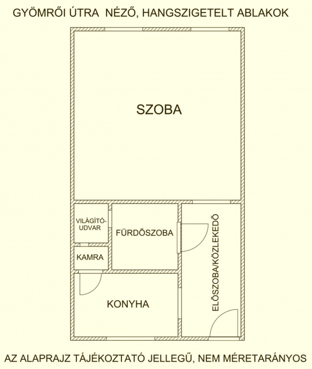 A világos konyhához kamra kapcsolódik, a fürdőszoba jól átszellőztethető, az előtér praktikusan bútorozható, a nagyméretű szoba hálófülkéssé alakítható.