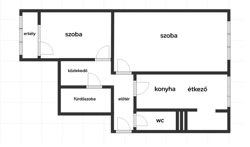 A lakás újraglettelt, fehér mészfestett, egészséges falazatú. Az átgondolt alaprajz és az üvegajtók kellemes, világos tereket eredményeznek.