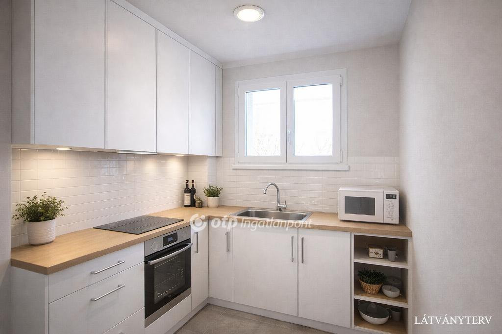- elszeparált, ablakos konyha