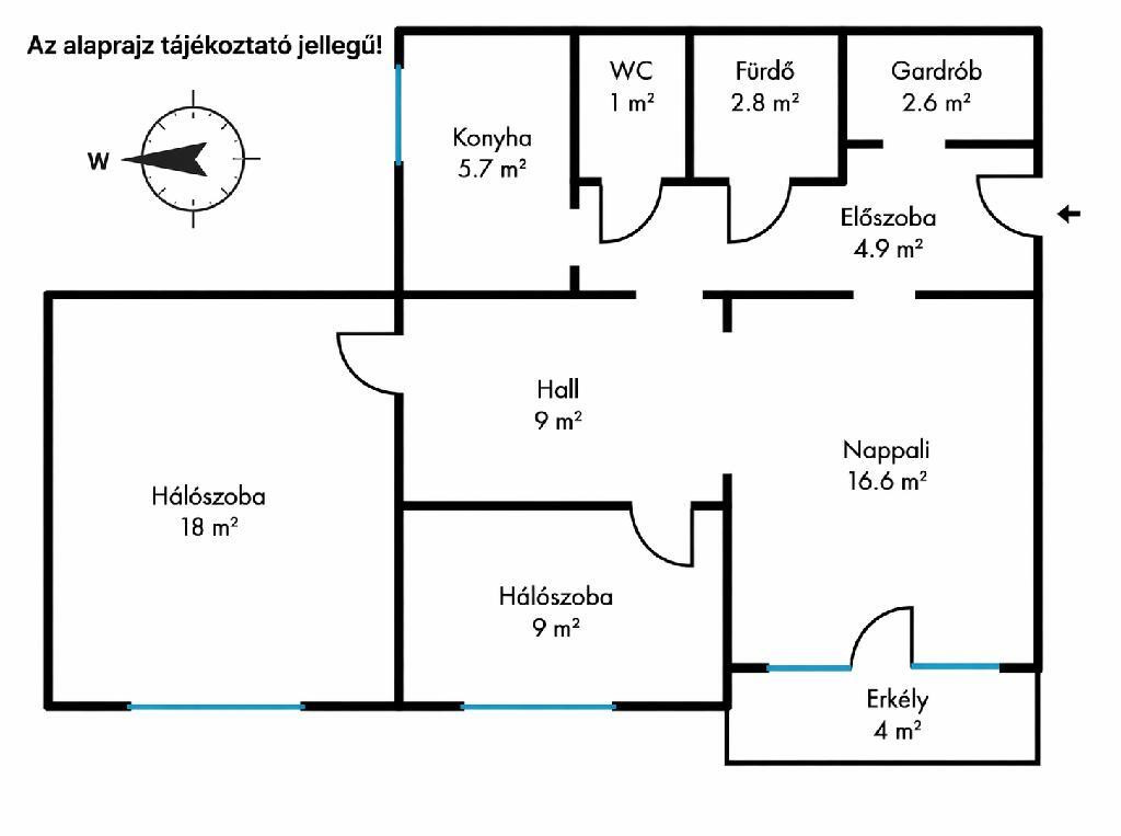 - A lakás előtt kialakított, leválasztott előtér (plusz hasznos alapterület)
