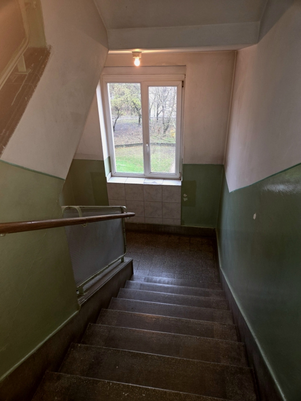 A 68 m2-es rész jelenleg is lakásként funkcionál, bár évek óta nem lakták. 3 szobával, konyhával, fürdőszobával, külön WC-vel, gardrobbal, kamrával rendelkezik. A lakás adottságai közé tartozik, hogy ablakai panorámás kilátást biztosítanak, valamint, mivel magasan az utca szintje felett helyezkedik el, csendesnek mondható.