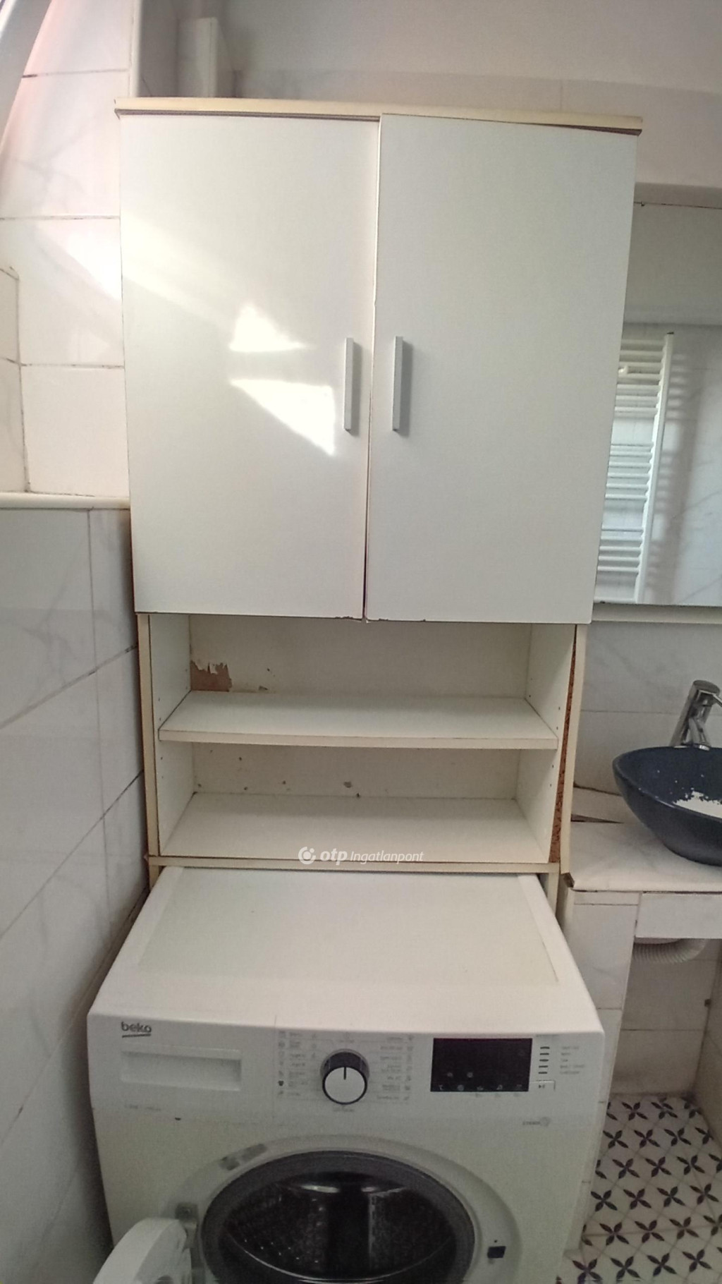 Kedvező rezsivel fenntartható és tehermentes az ingatlan. A társasház 1952-ben épült, 134 lakásos, liftes, négy emeletes, tégla építésű építmény. A lakás kiváló térszerkezetében szobái külön nyílnak, fürdő és a WC külön helyiségben kaptak helyet, vizesblokkokat kerámia burkolatok, szobákat jó állapotú parketta fedi. Előtereit, konyhát járólapokkal burkolt. A bejárati ajtó biztonsági, szobák ablakai nyugati tájolásúak és a konyhának, fürdőszobának is vannak ablakai . Az ingatlan befektetésként volt hasznosítva, jelenleg bérlő már nincs, bár jelentkező van az eladónál. Konyhabútort cserélni kell és a szobák ablakai felújítást ( legalább mázolást ) igényelnek. Jelenleg elektromos radiátorral történik a fűtés. Gáz lenne a lakásban, viszont nincs gázóra beszerelve. A gáztűzhely palackos gázzal működik . A meleg víz ellátást egy új boyler biztosítja, mely éjszakai árammal működik. A villanyáram feltöltős, nempedig előfizetéses. A bent lévő bútorok igény esetén maradhatnak, így a lakás gyakorlatilag apró javításokkal azonnal költözhető.