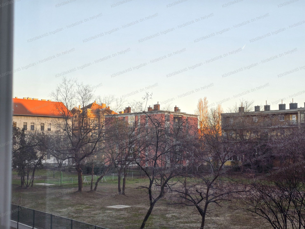 A nappali (20 m²) és a hálószoba (13 m²) parkos, zöld területre néz, délkeleti tájolásának köszönhetően bőséges természetes fényt kap, míg a korszerű, többrétegű nyílászárók hatékony hang- és hőszigetelést biztosítanak.