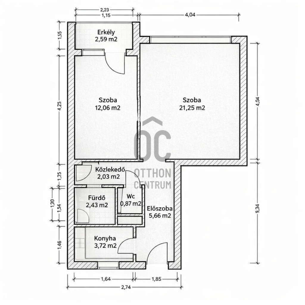 - 50 m², 2 szoba, erkély - 2,6 m²