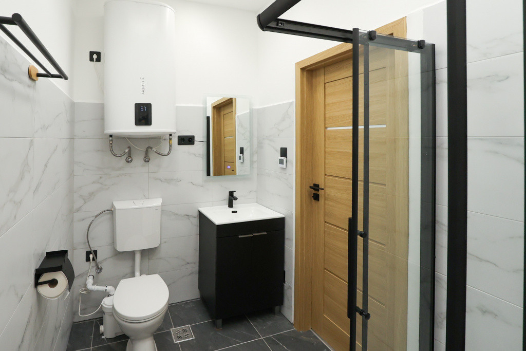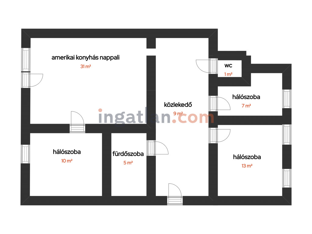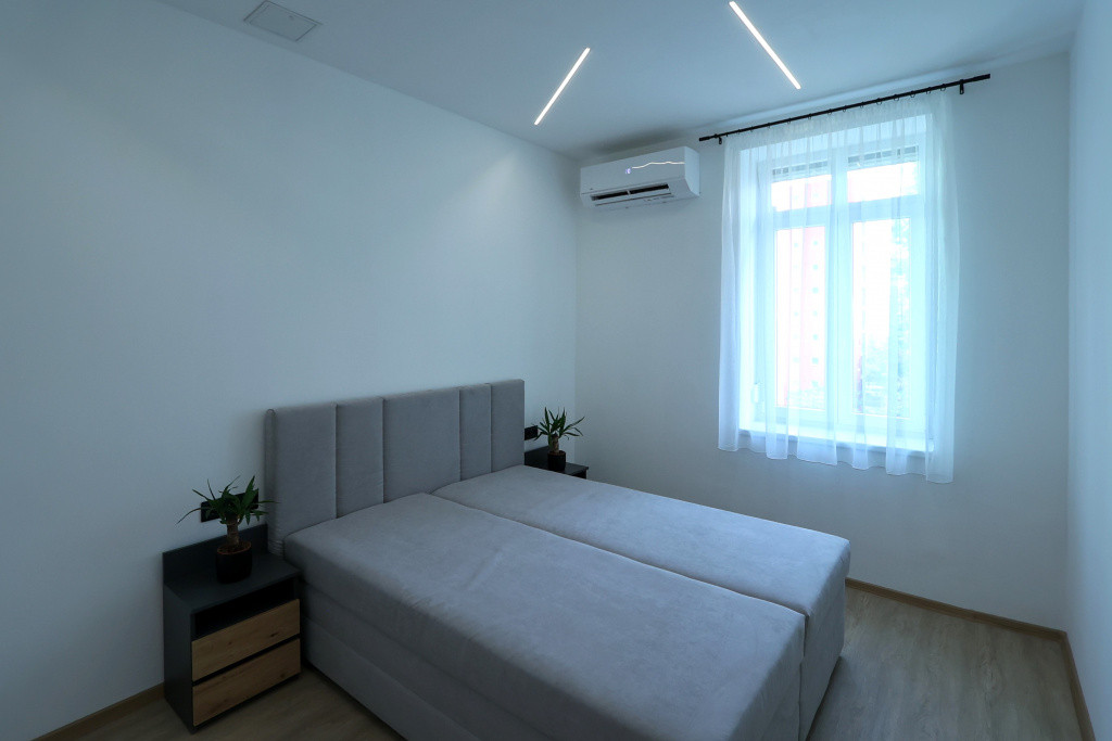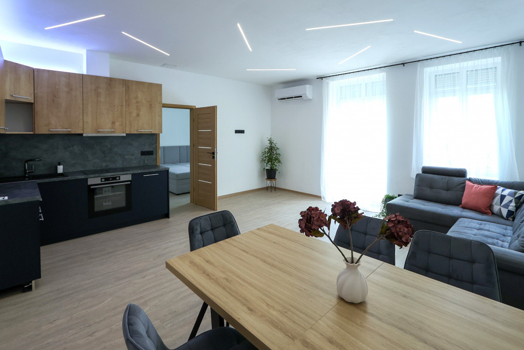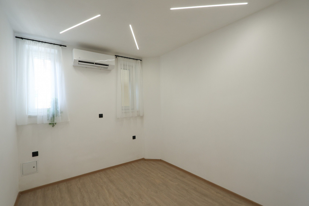 Az ingatlan teljes körű felújításon esett át. Az egyik hálószoba a 30 nm-es amerikai konyhás nappaliból nyílik, a többi külön bejáratú. Fűtésről a minden helyiségben megtalálható hűtő-fűtő klíma gondoskodik. Két wc, egyik a fürdőszobában van.