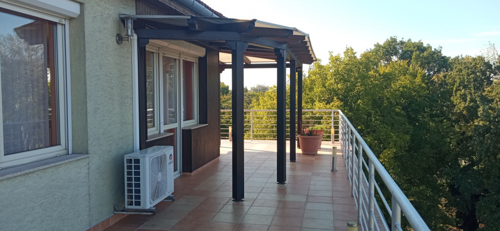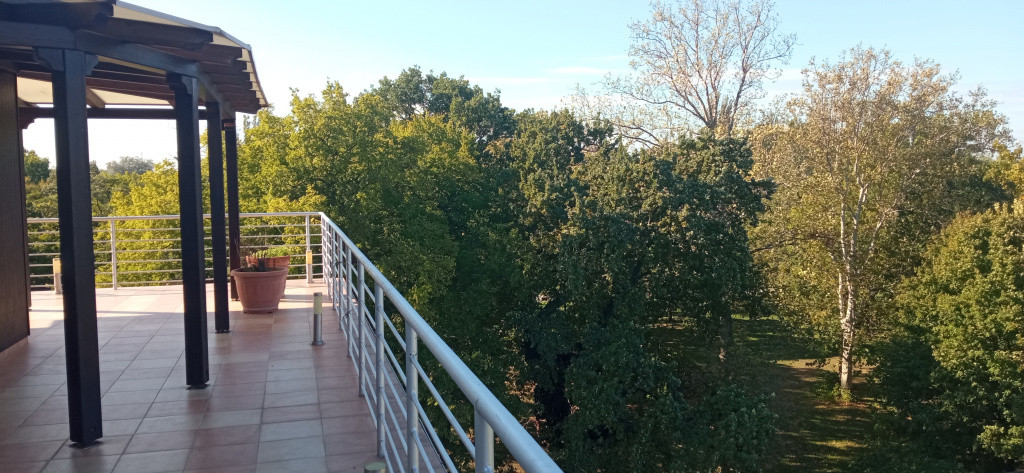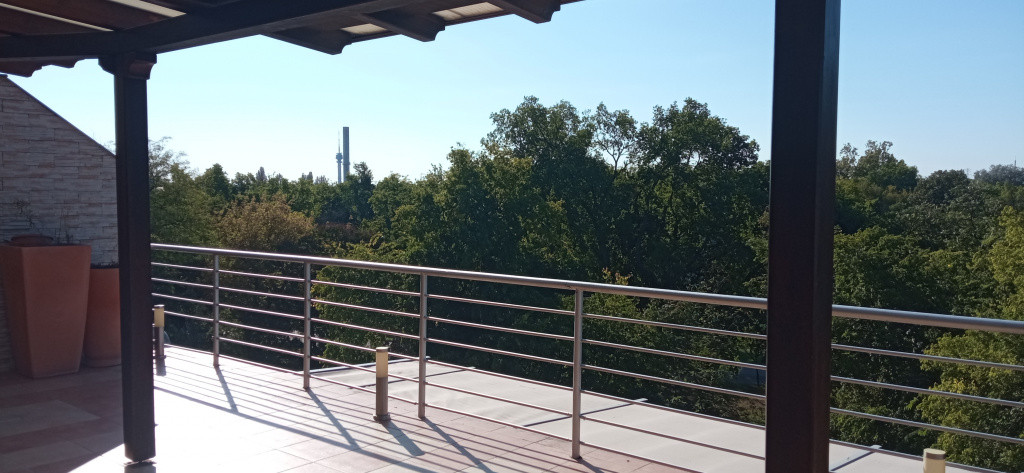 Városi komfort -Zöldövezeti panorámával. Eladó A Népliget szomszédságában egy 120 m2-es LAKÁS hatalmas terasszal, 1db PARKOLÓVAL a mélygarázsban és 12 m2-es TÁROLÓVAL . A lakás jelenleg 3 szobás, még egy félszoba kialakítható benne. Konyha és a nappali szoba egy légtérben. Körbenapozott, világos, barátságos hangulatú. A lakásban a minőségi burkolatok újszerűek, a nappaliszoba burkolata bambuszparketta. Az előszobában egy hatalmas STANLEY tükrös beépített szekrény kapott helyet. A lakás két oldalán„L” alakban egy 80 m2-es hatalmas terasz kapcsolódik ,amelyre a nappaliból és az egyik hálószobából lehet kilépni. A terasz déli oldalán egy kiépített zuhanyzó is használható a nyári melegben. Egy jakuzzi is kényelmesen elfér. A terasz méreteiből adódóan nagyon jól kihasználható kerti funkcióként. Sütögetésre, kellemes időtöltésre, vendégek fogadására. Lehetőség van a terasz beépítésére is. Télikert jellegű helyiség kialakítására, amit hideg időszakban nappaliszoba- dolgozószoba - étkező funkcióként használható egész évben. A társasház közös kertje szépen gondozott. Van benne nyugodt – parkos kialakítás padokkal, játszótér a gyerekeknek és egy kinti sütögető is. A bejáratnál felszíni parkolók is találhatóak. A Népligeti zöldövezet szó szerint egy lépéssel megközelíthető a hátsó kiskapun keresztül, ahol rendszeres sportolás, kutyasétáltatás, kerékpározás, feltöltődés céljából igénybe vehető kellemes közösségi tér. Az 5. emeletre és a mélygarázsba „közvetlen lift” tartozik.