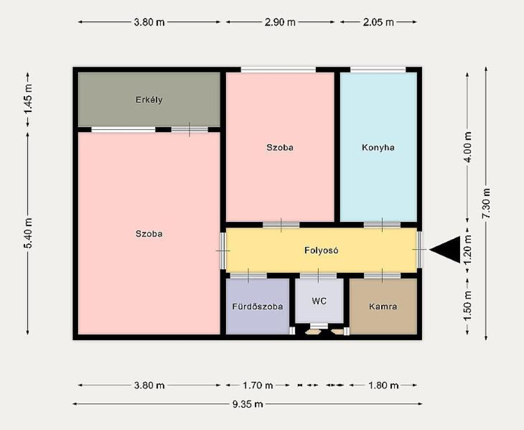 Az ingatlan ablakai Dél-Nyugati fekvésűek így rendkívül világos.