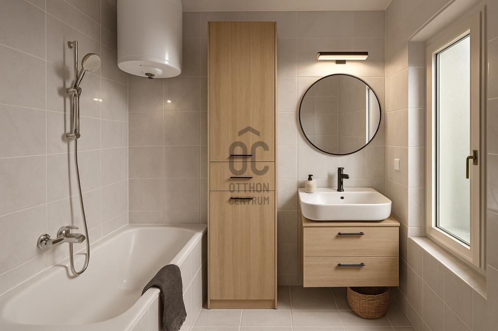 - Fürdőszoba kádas kivitelben, tiszta, világos csempével