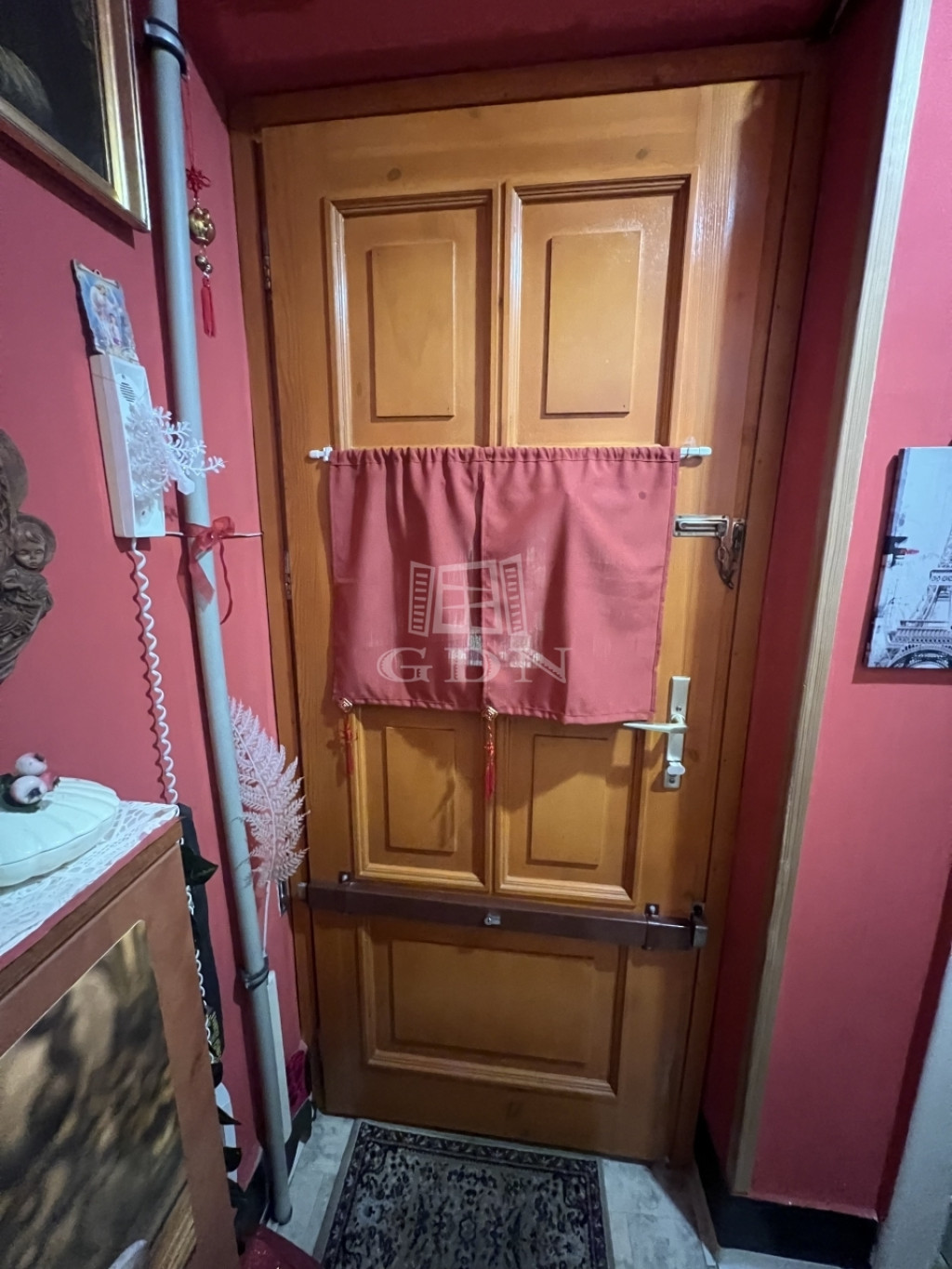 Méretek és a jelenlegi elrendezése az alaprajzon látható, tájolása D-Ny-i, belső parkra néz a lakás.