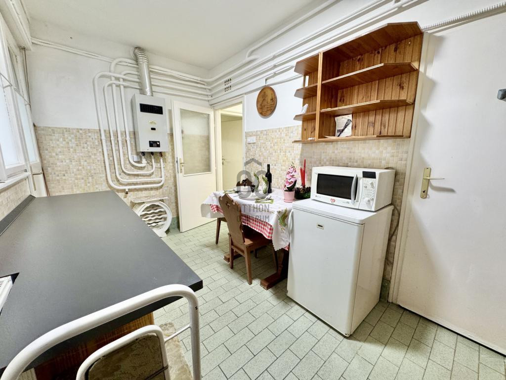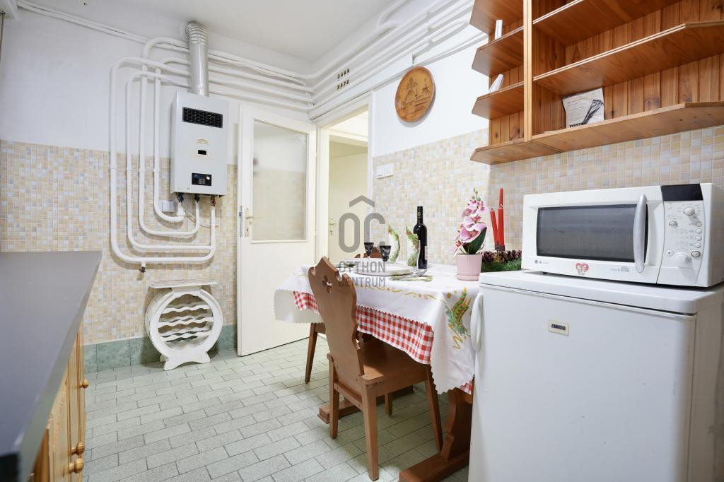 A lakáshoz egy kb. 15 m²-es pincehelyiség is tartozik, a társasház fenntartása pedig kiszámítható, a közös költség havi 14 500 Ft.