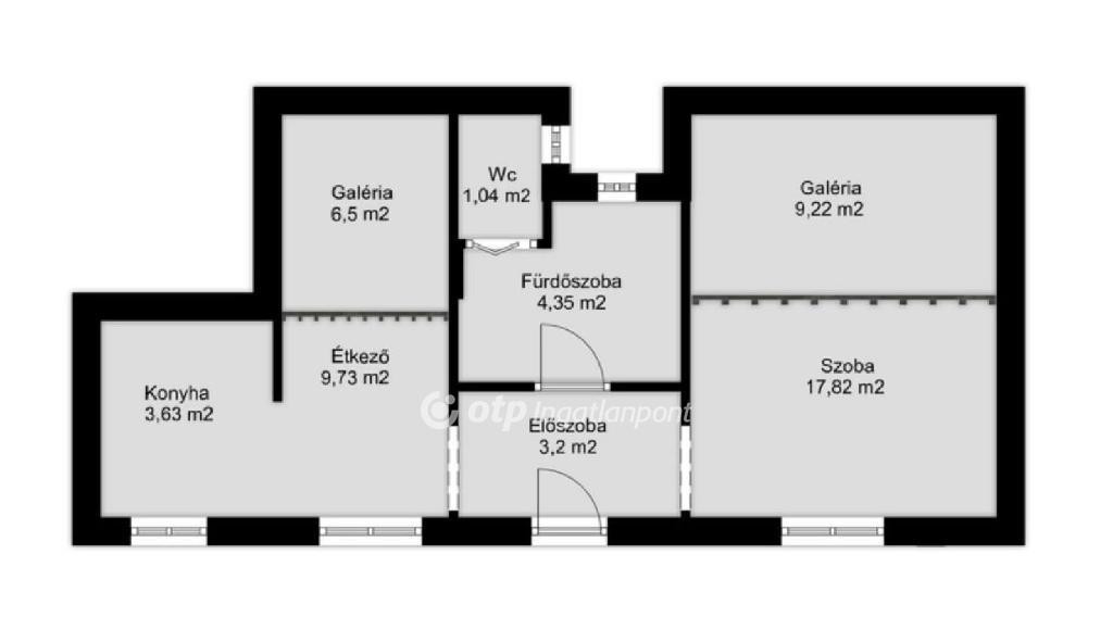 A lakás az első emeleten helyezkedik el, belmagassága 3,6 m . Két felvőgaléria került kialakításra aminek a belmagassága 1,4 m .