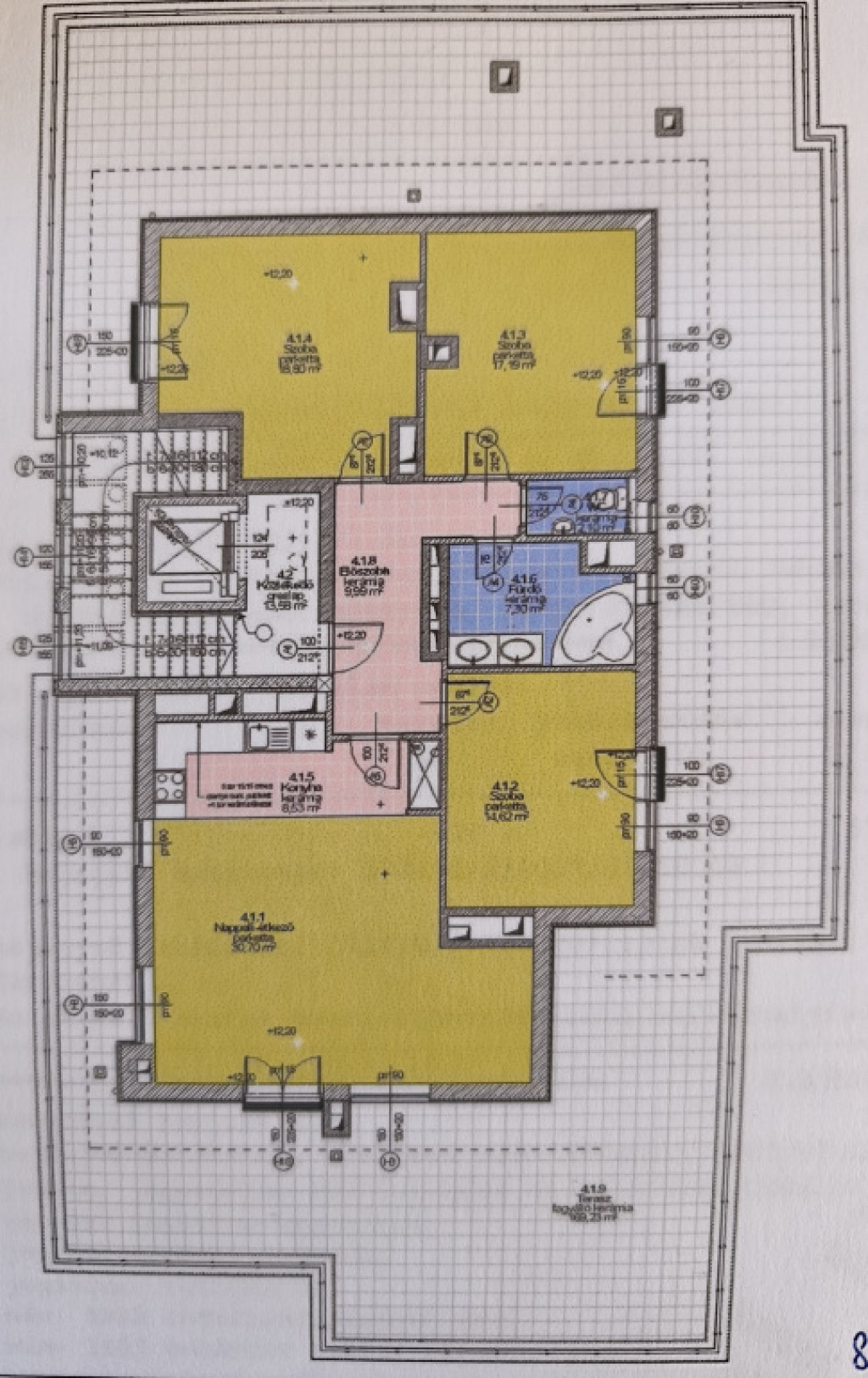 • 170 m² körbefutó, napos tetőterasz – reggeli kávé, baráti esték, wellness vagy akár szauna kialakításának lehetőségével